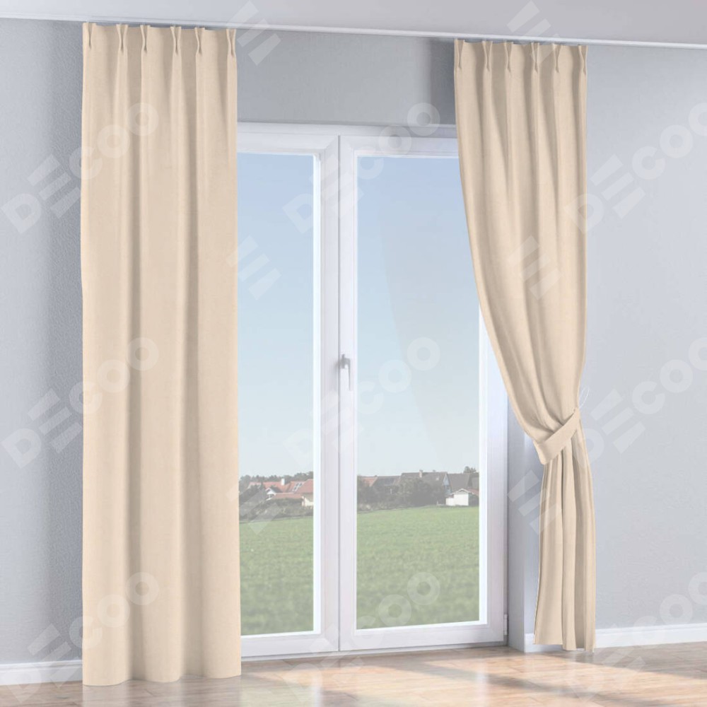 Комплект прямых штор, от производителя «Cortin», пошиты из ткани блэкаут с блеском розовая пудра, артикул ткани 34632. С изнаночной стороны в верхней части штор пристрачивается шторная лента с декоративными складками «Кустик». Обратная сторона основного материала черного цвета, что обеспечивает необходимую светонепроницаемость. Для создания элегантных складок прямые шторы шьются по стандарту с коэффициентом 1:2 (на 100 см. ширины проёма 200 см. ширины ткани).