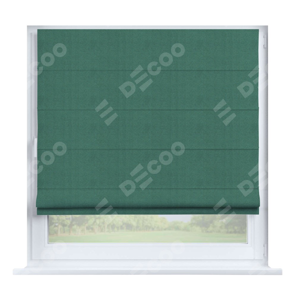Римская штора производителя «Cortin», устанавливается на створку окна, пошита из ткани блэкаут тиснение с блеском изумрудный, артикул 34628. Изнаночная сторона материала черного цвета, что обеспечивает необходимую светонепроницаемость. Штора шьётся по индивидуальным размерам, для данного типа римской шторы возможная ширина от 35 до 150 см., высота до 250 см.