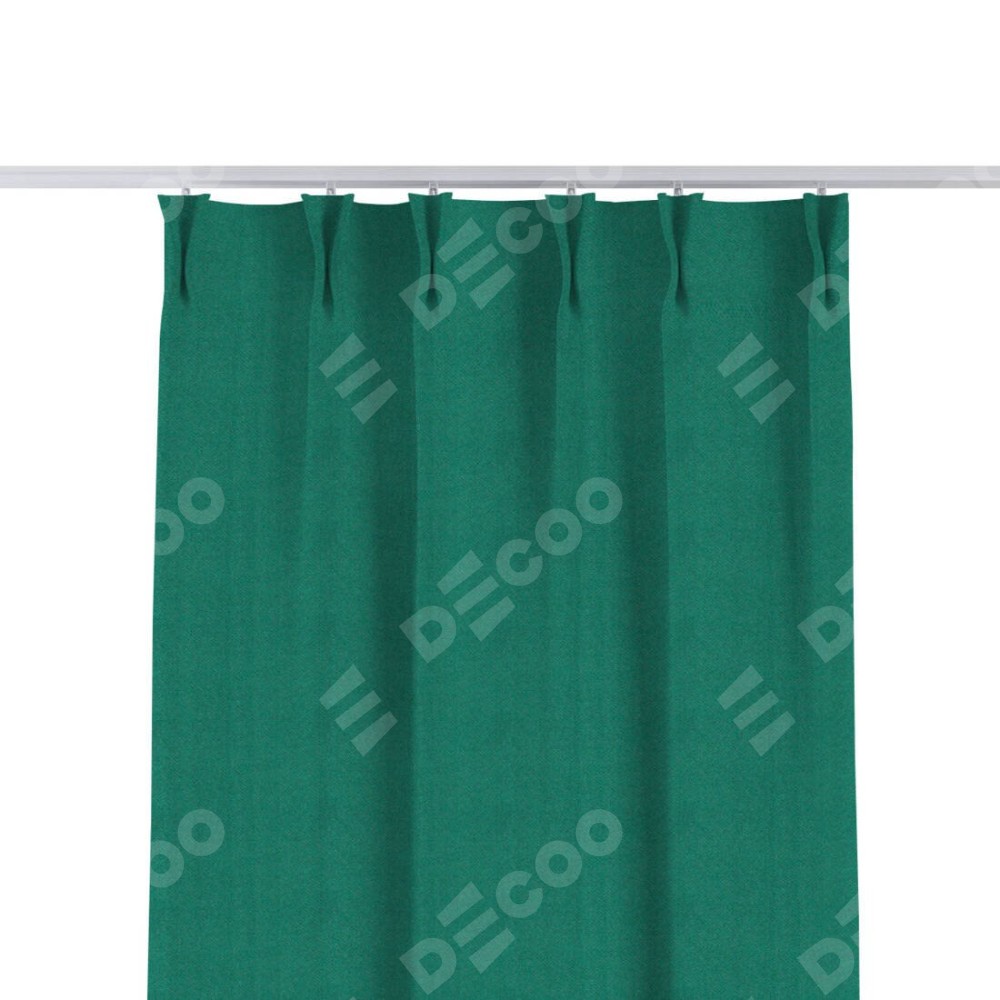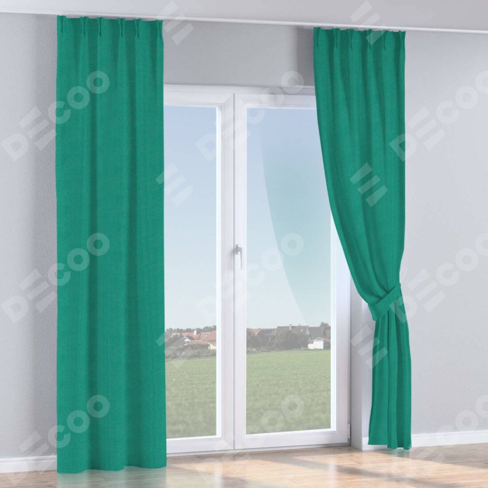 Комплект прямых штор, от производителя «Cortin», пошиты из ткани блэкаут с блеском изумрудный, артикул ткани 34628. С изнаночной стороны в верхней части штор пристрачивается шторная лента с декоративными складками «Кустик». Обратная сторона основного материала черного цвета, что обеспечивает необходимую светонепроницаемость. Для создания элегантных складок прямые шторы шьются по стандарту с коэффициентом 1:2 (на 100 см. ширины проёма 200 см. ширины ткани).