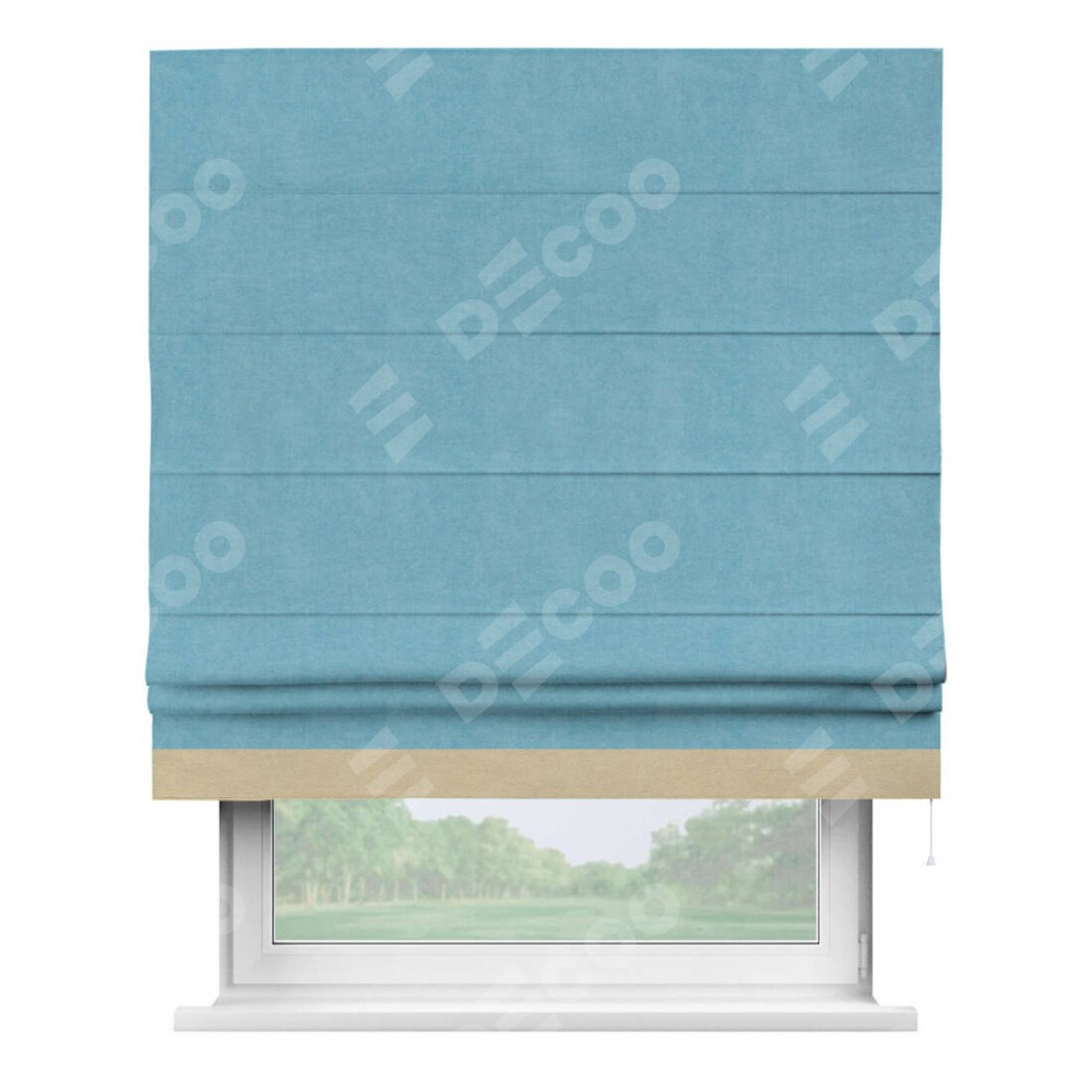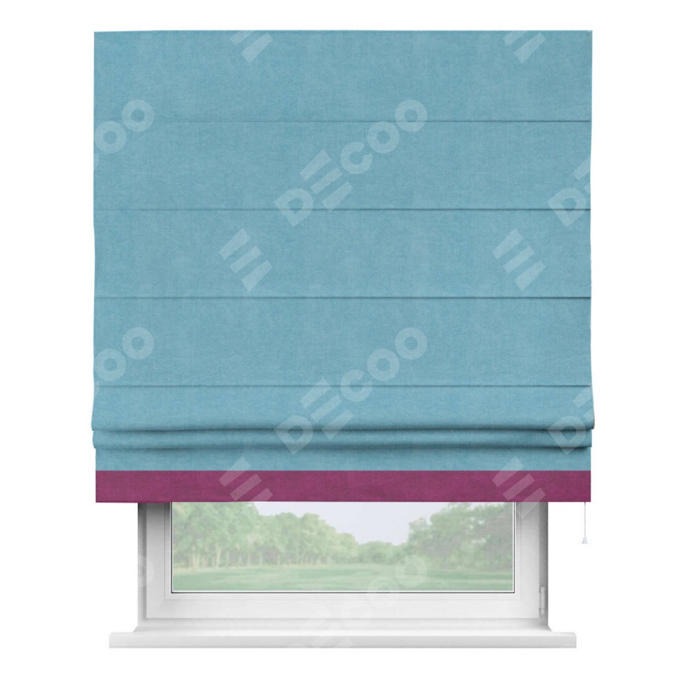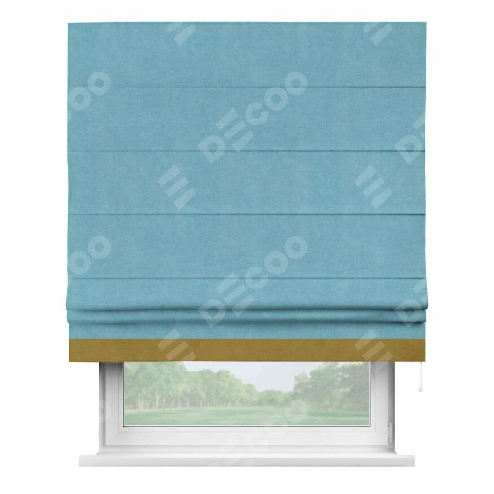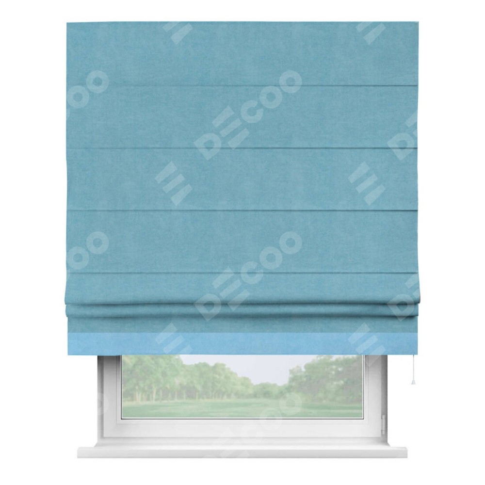 Римская штора производителя «Cortin», используется для проёма, пошита из ткани вельвет ментоловый, артикул ткани 10443. Отделка шторы кантом «Джестер», ткань для канта используется из вельвета разной расцветки на выбор. Имеет универсальный механизм и подходит для монтажа: на потолок, на стену и в нишу.