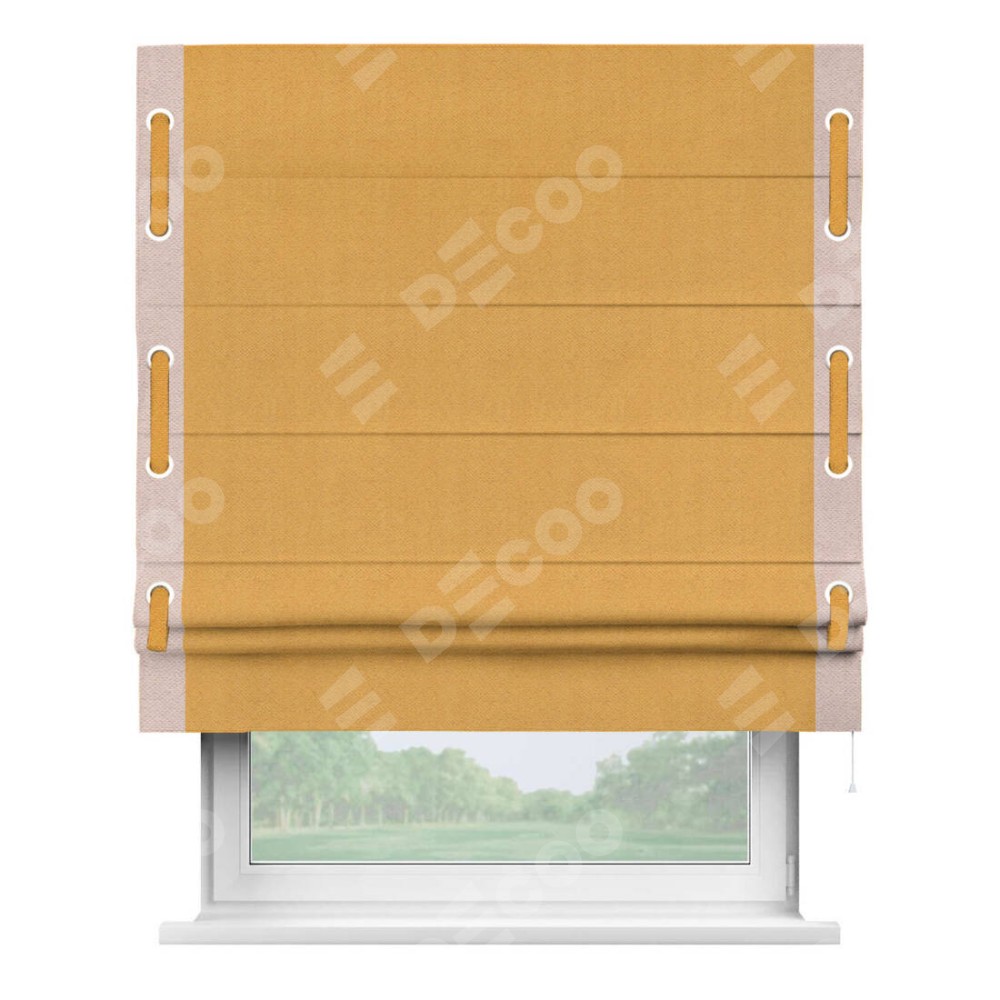 Римская штора «Кортин» с кантом Стрим Дуо (люверсы с пояском), для проема, ткань блэкаут с блеском золотой
