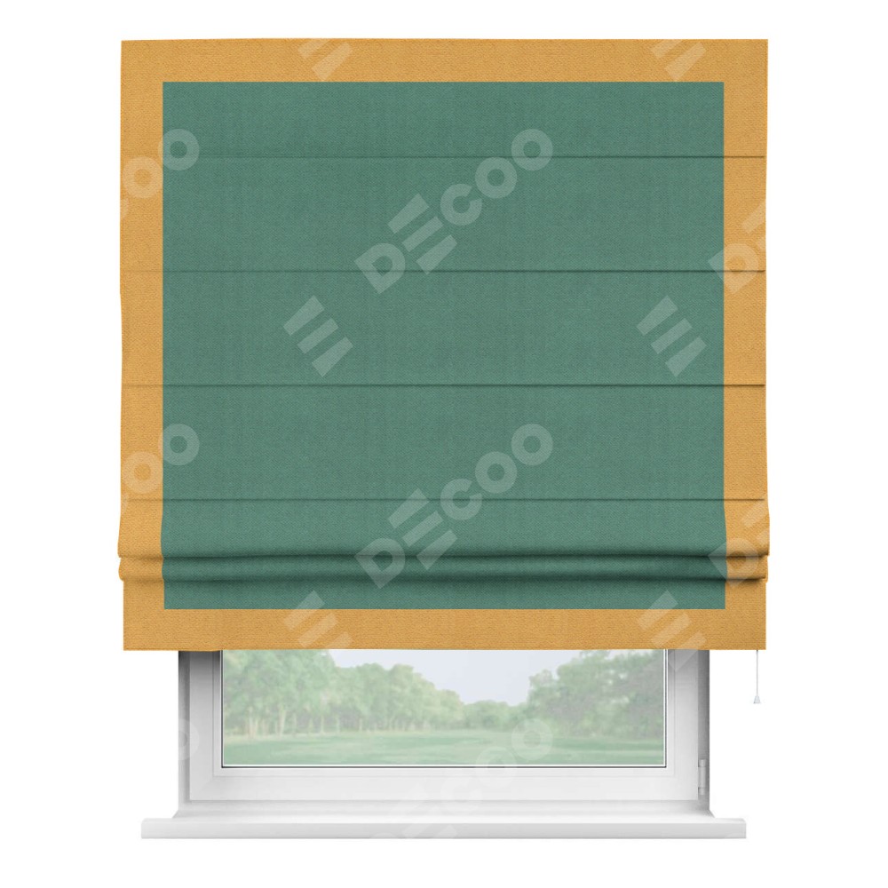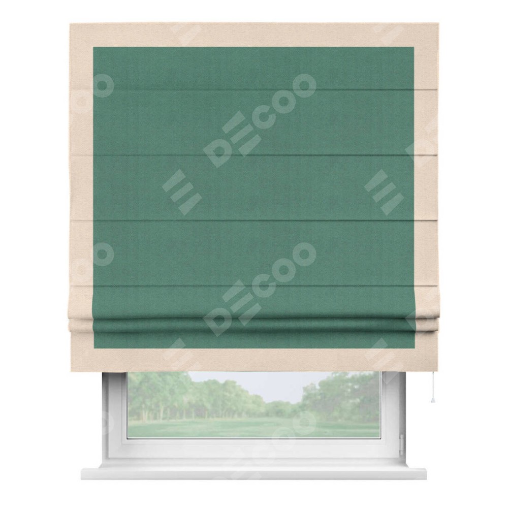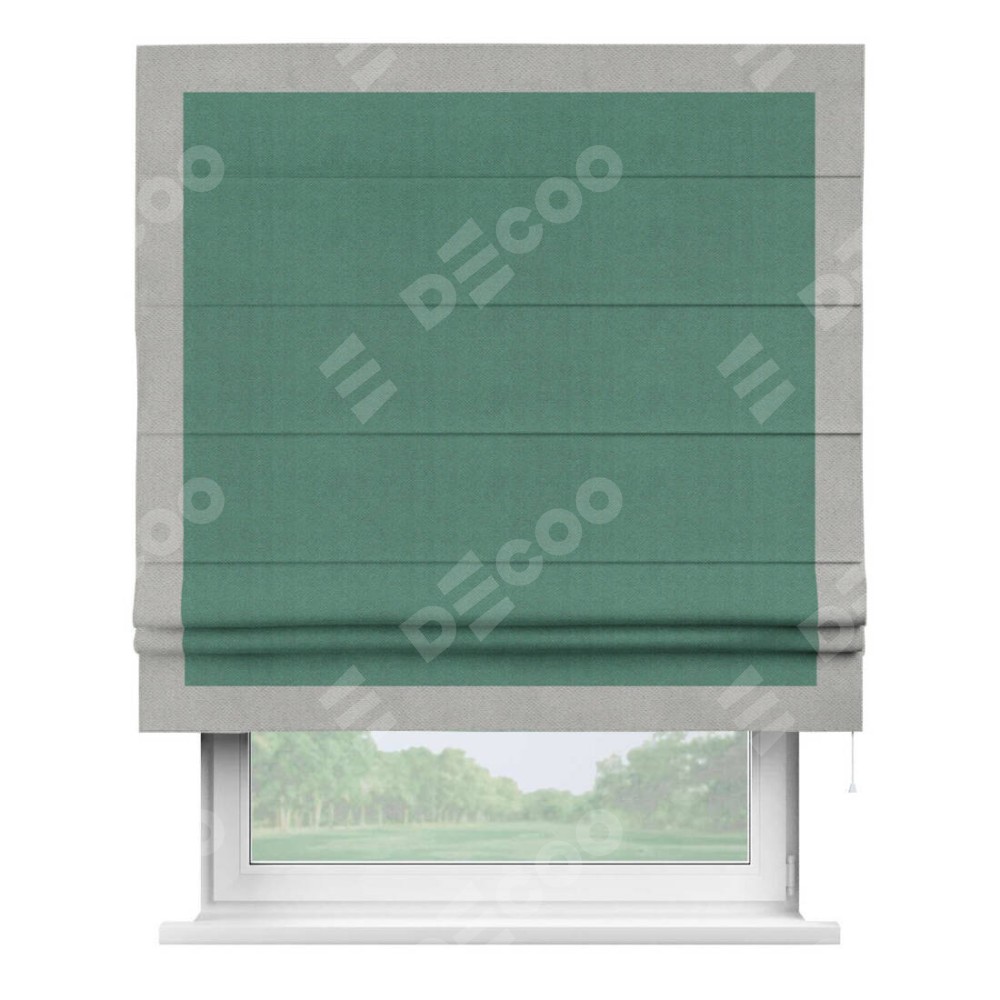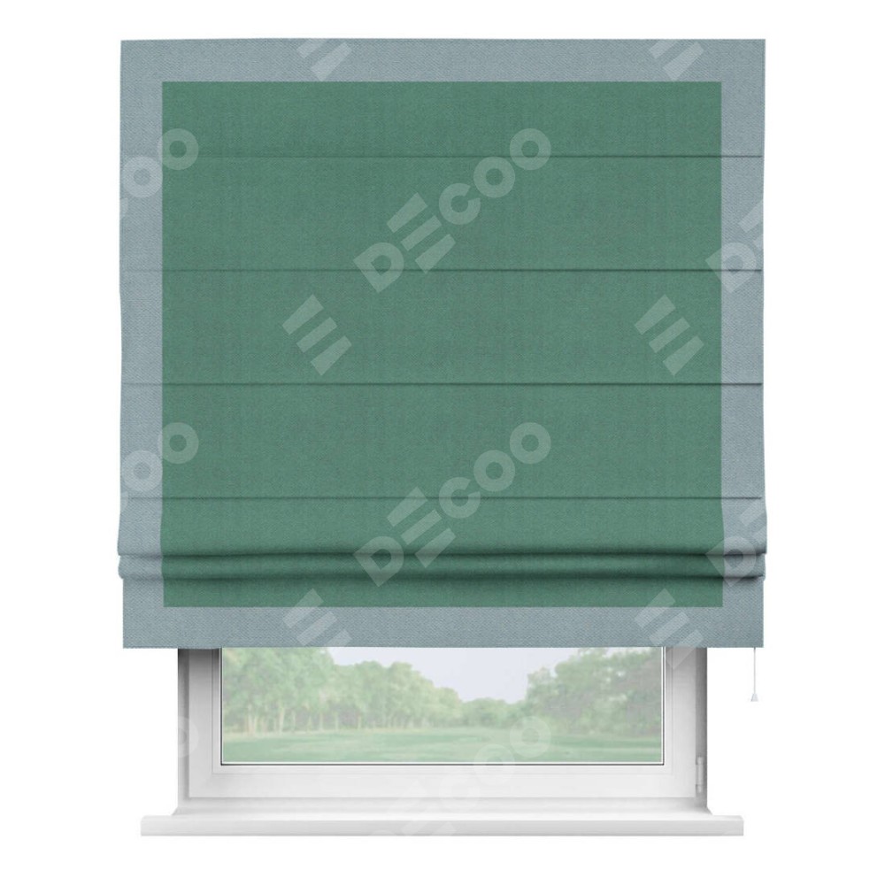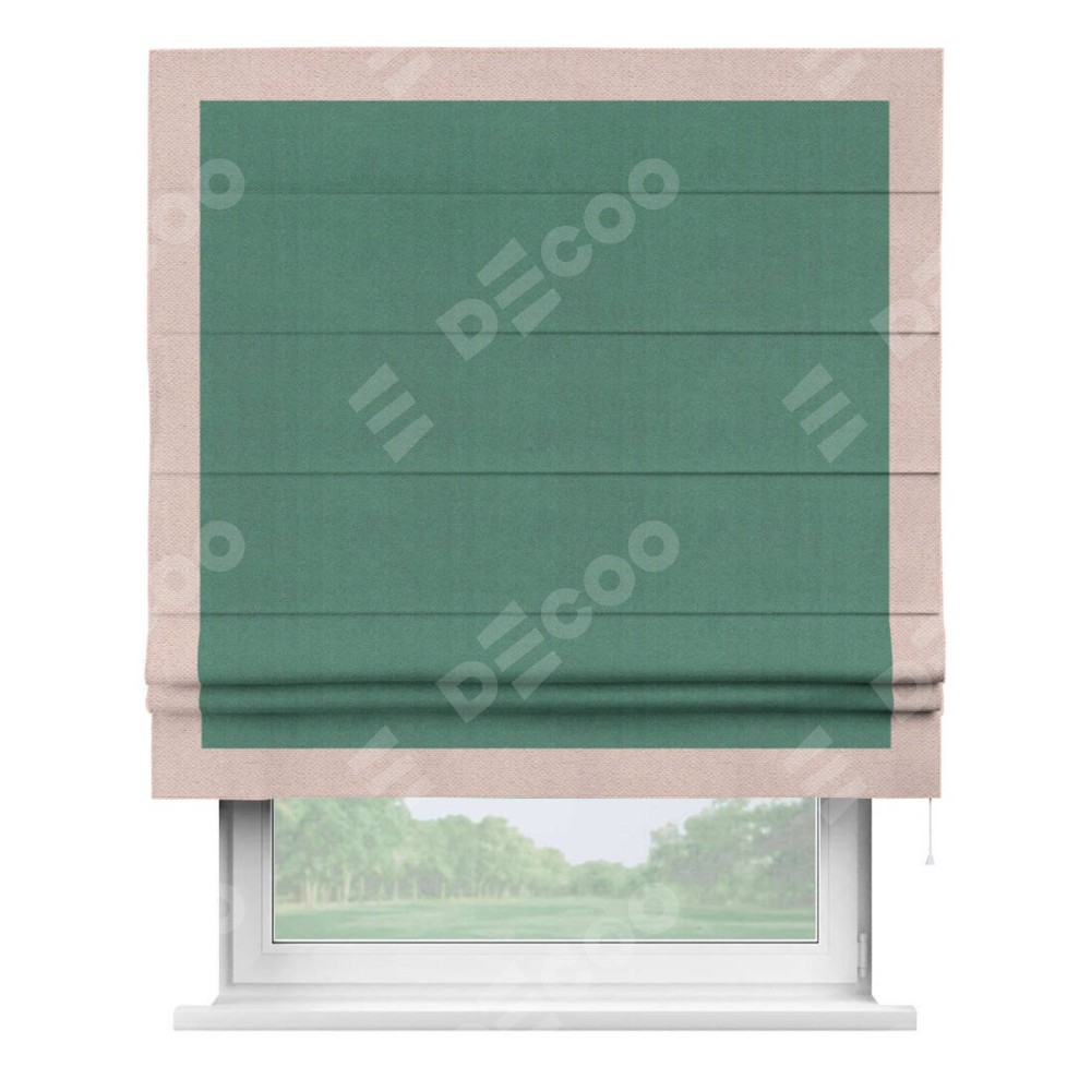 Римская штора «Кортин» с кантом Чесс, для проема, ткань блэкаут с блеском изумрудный