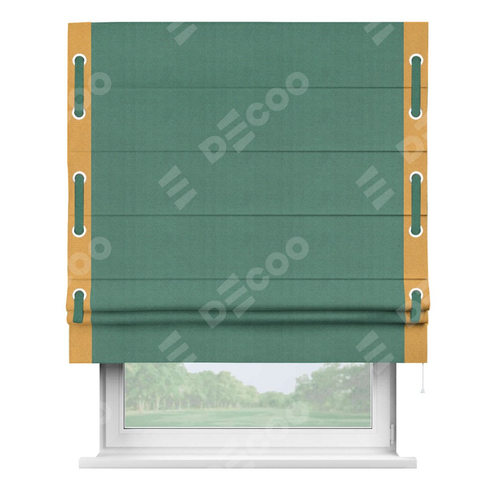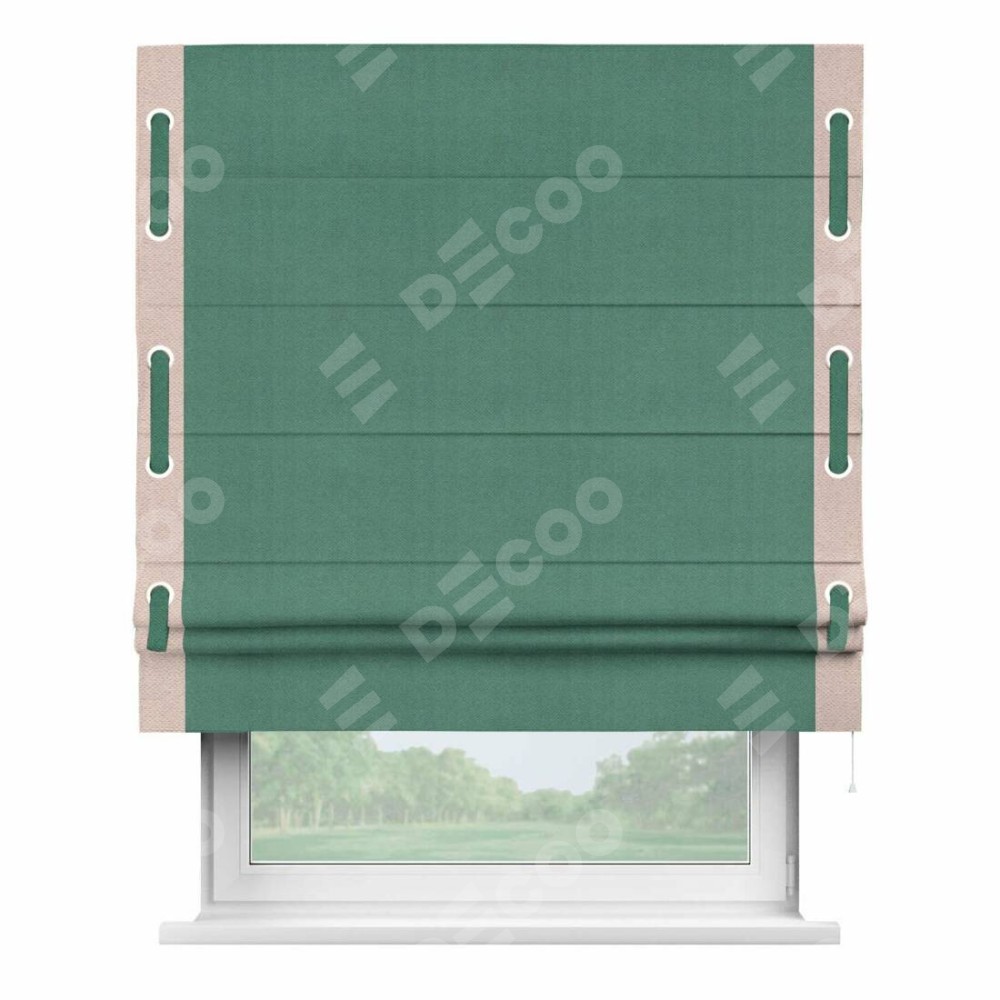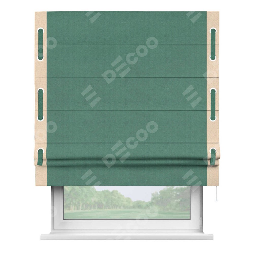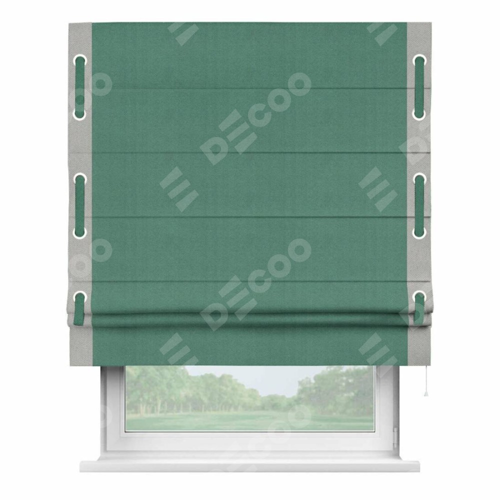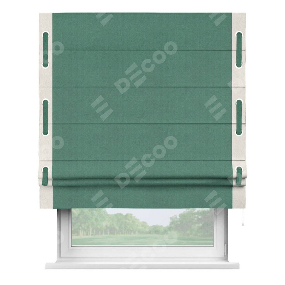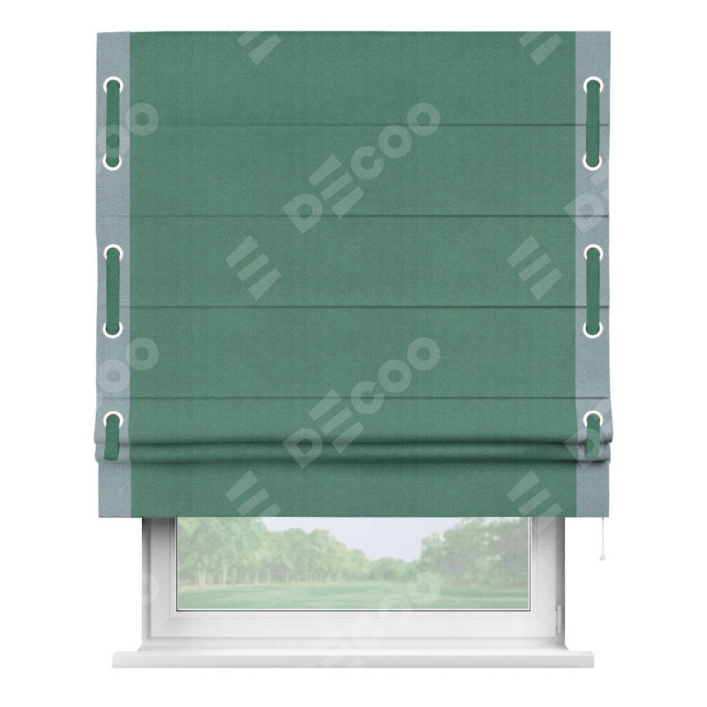Римская штора «Кортин» с кантом Стрим Дуо (люверсы с пояском), для проема, ткань блэкаут с блеском изумрудный