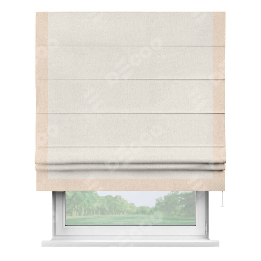 Римская штора производителя «Cortin», используется для проёма, пошита из ткани блэкаут с блеском светло-серый, артикул 34633. Отделка шторы кантом «Виктория», ткань для канта используется из блэкаута с блеском разной расцветки на выбор. Изнаночная сторона материала черного цвета, что обеспечивает необходимую светонепроницаемость. Имеет универсальный механизм и подходит для монтажа: на потолок, на стену и в нишу.