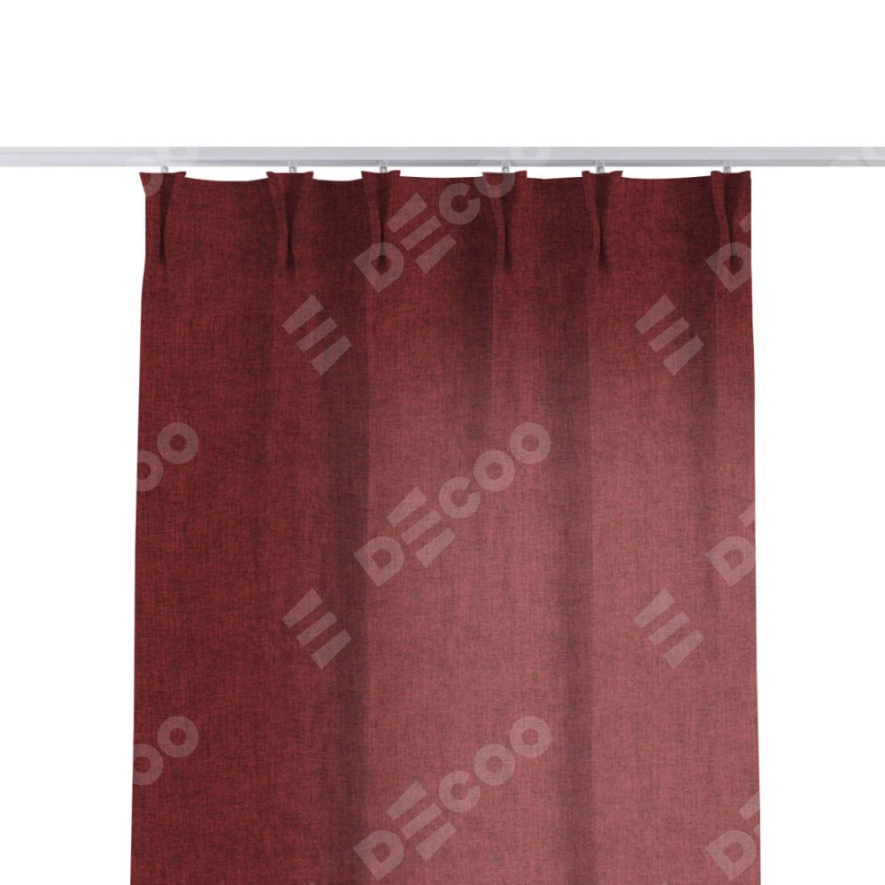 Комплект прямых штор, от производителя «Cortin», пошиты из ткани лён кашемир бордовый, артикул ткани 17213. С изнаночной стороны в верхней части штор пристрачивается шторная лента с декоративными складками «Кустик». Для создания элегантных складок прямые шторы шьются по стандарту с коэффициентом 1:2 (на 100 см. ширины проёма 200 см. ширины ткани).