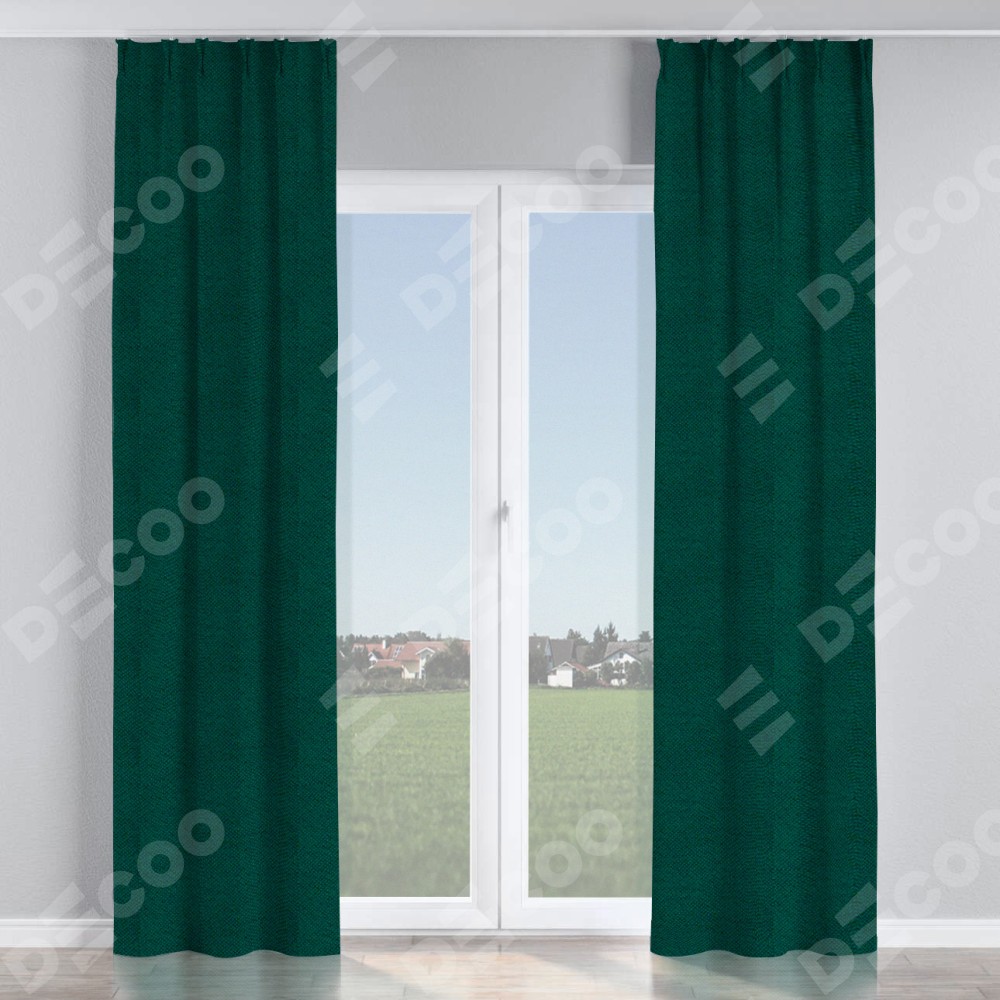 Комплект прямых штор, от производителя «Cortin», пошиты из ткани cotton блэкаут изумруд, артикул ткани 35311. С изнаночной стороны в верхней части штор пристрачивается шторная лента с декоративными складками «Кустик». Для создания элегантных складок прямые шторы шьются по стандарту с коэффициентом 1:2 (на 100 см. ширины проёма 200 см. ширины ткани).