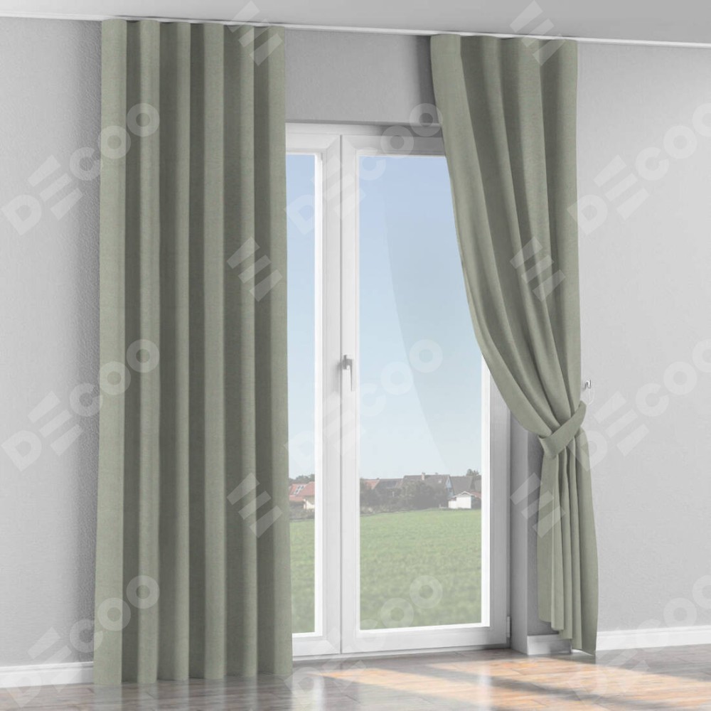 Комплект прямых штор, от производителя «Cortin», пошиты из ткани блэкаут однотонный серый, артикул ткани 88292. С изнаночной стороны в верхней части штор пристрачивается шторная лента с декоративными складками «Волна». Для создания элегантных складок прямые шторы шьются по стандарту с коэффициентом 1:2 (на 100 см. ширины проёма 200 см. ширины ткани).