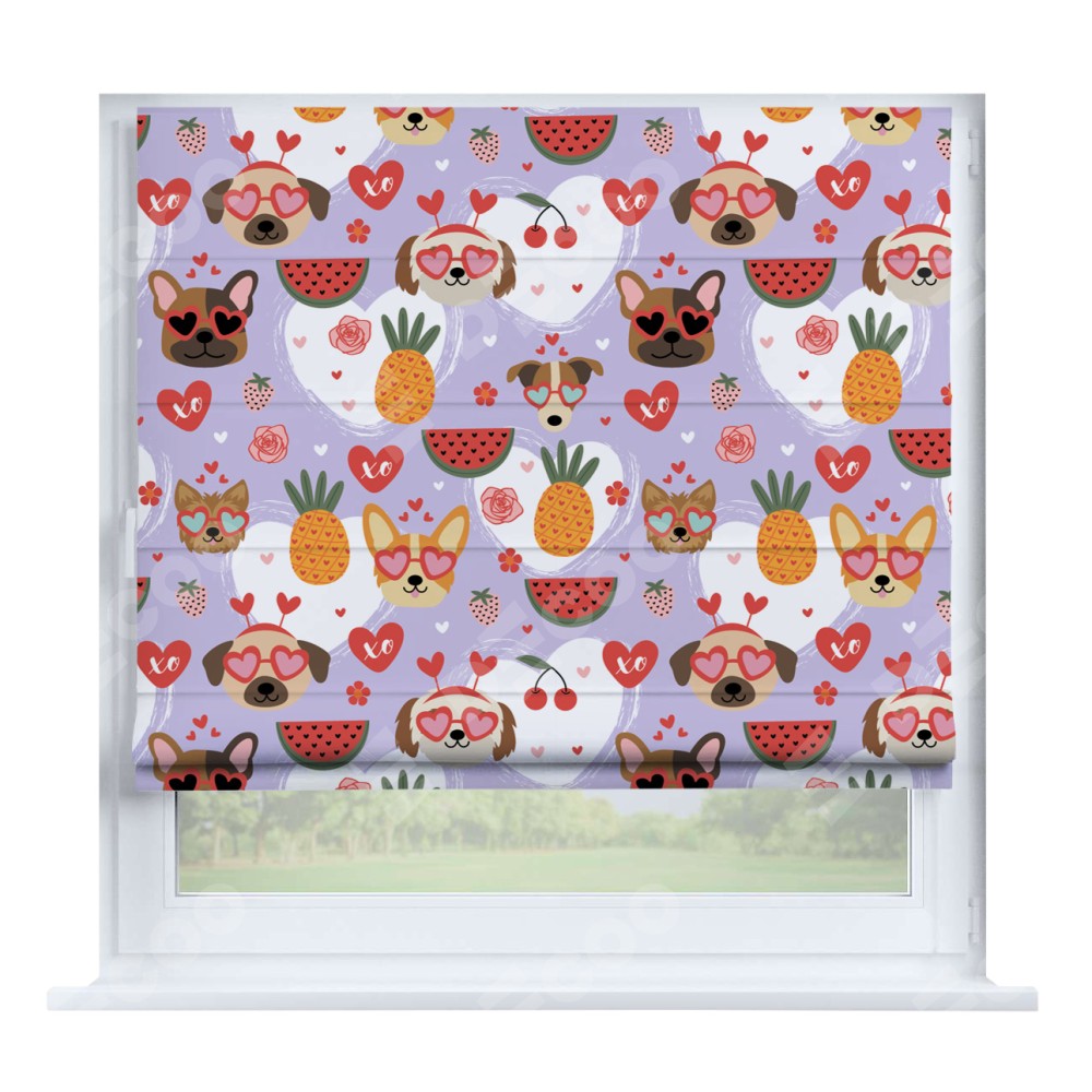 Римская штора производителя «Cortin», устанавливается на створку окна, пошита из ткани блэкаут с нанесением сублимационной печати «Забавные собачки». Штора шьётся по индивидуальным размерам, для данного типа римской шторы возможная ширина от 35 до 150 см., высота до 250 см.
