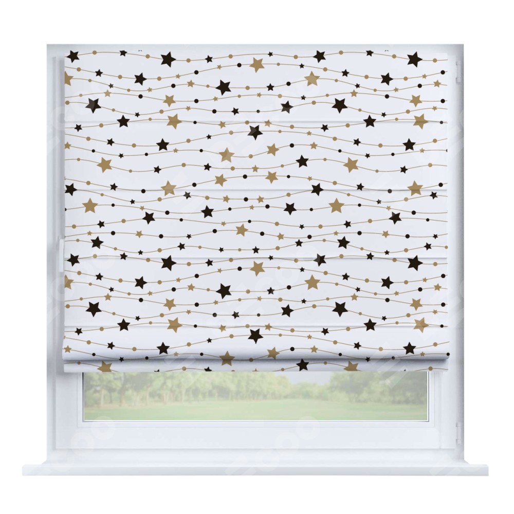 Римская штора производителя «Cortin», устанавливается на створку окна, пошита из ткани блэкаут с нанесением сублимационной печати «Звёздная нить». Штора шьётся по индивидуальным размерам, для данного типа римской шторы возможная ширина от 35 до 150 см., высота до 250 см.
