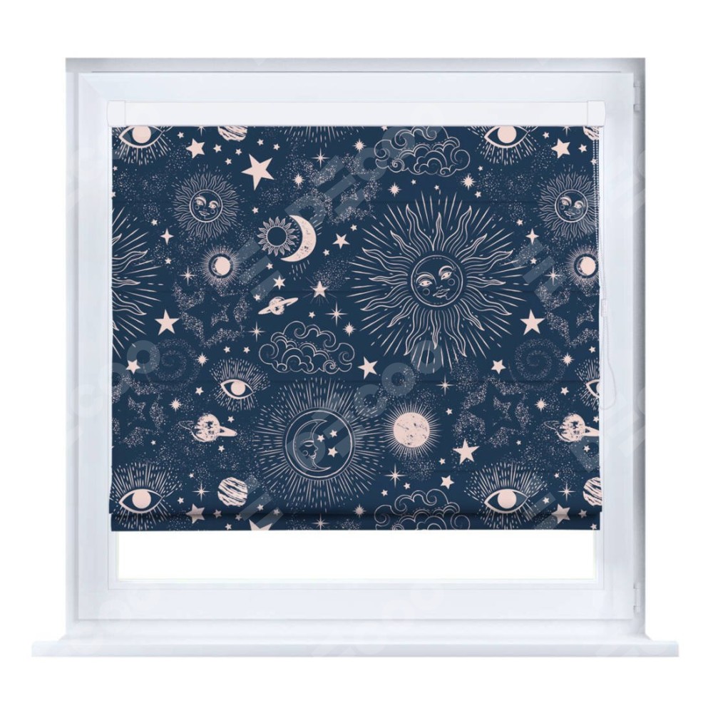 Римская штора «Кортин» на створку «Звёзды и планеты» предоставлена в следующих характеристиках: