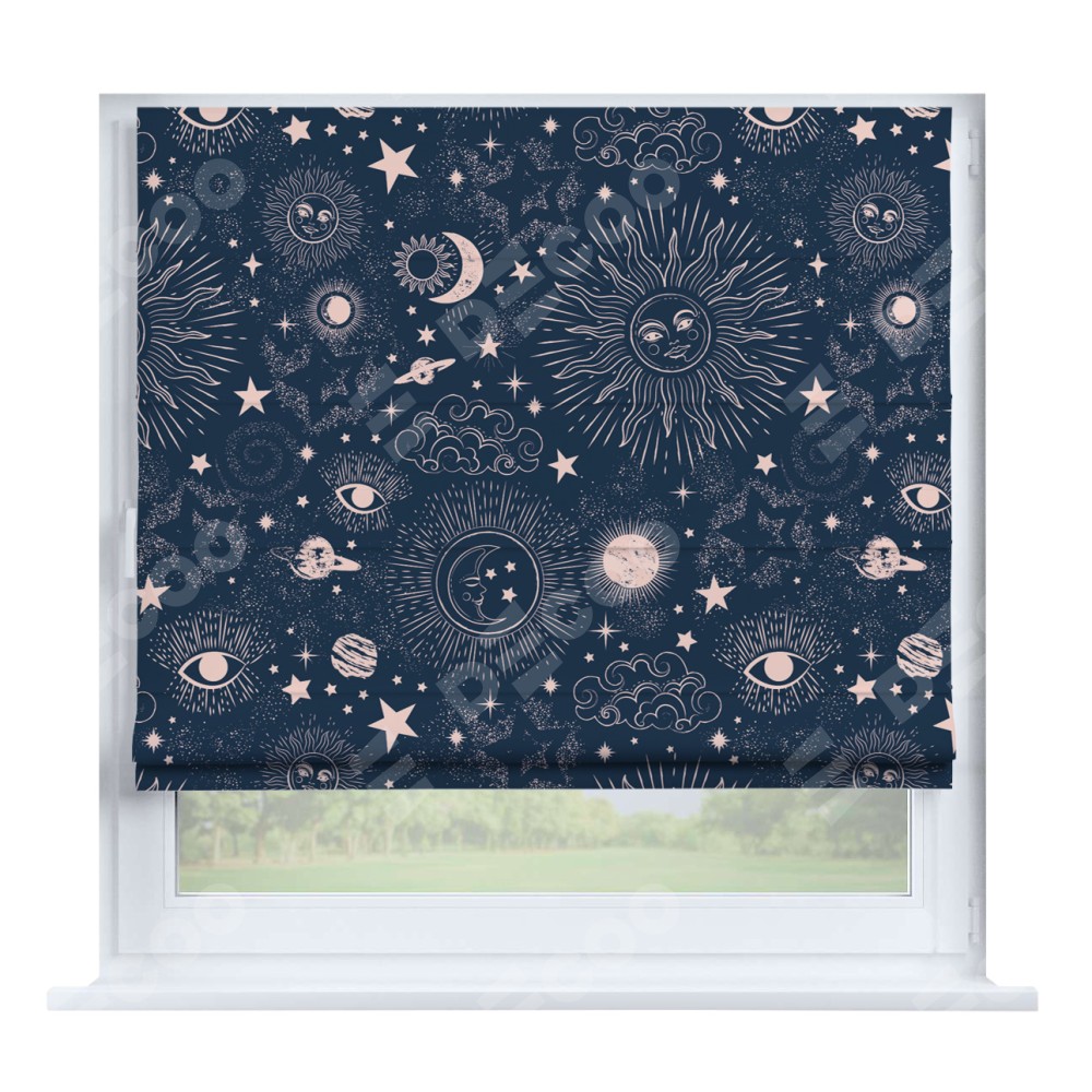 Римская штора «Кортин» на створку «Звёзды и планеты»