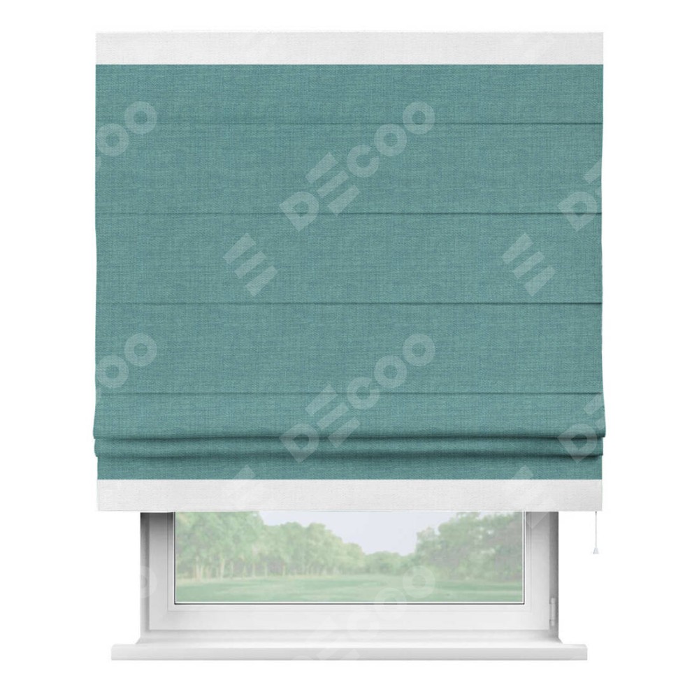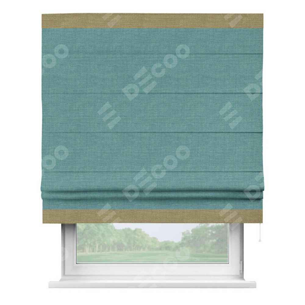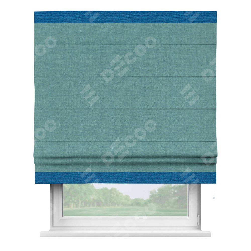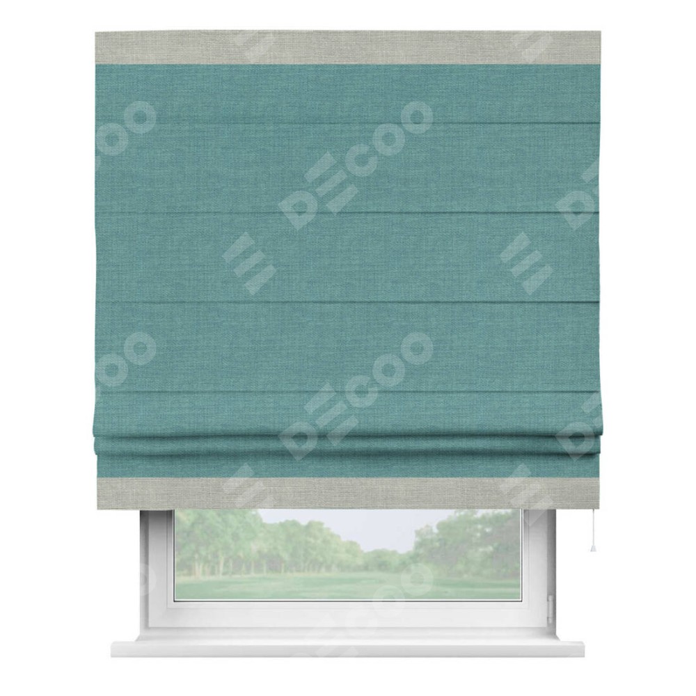 Римская штора «Кортин» с кантом Горизонт, для проема, ткань лён бирюза