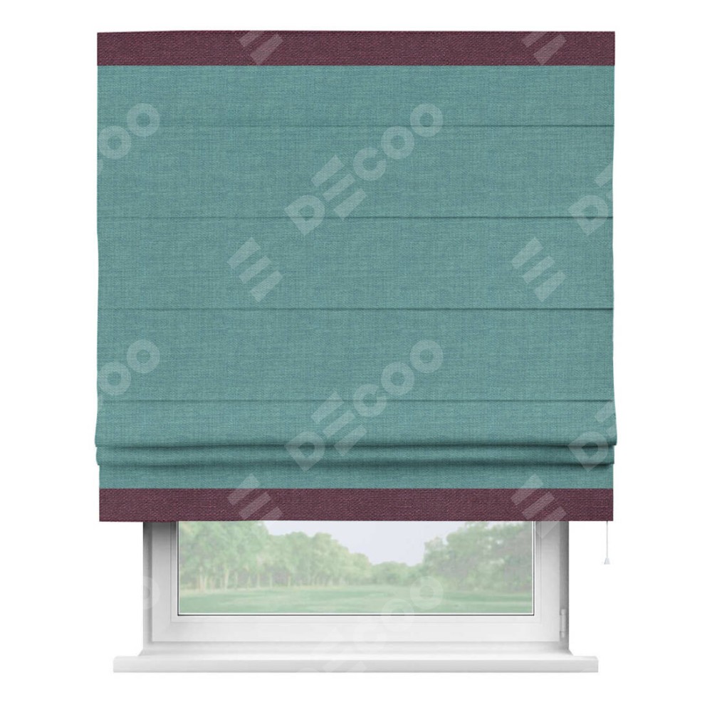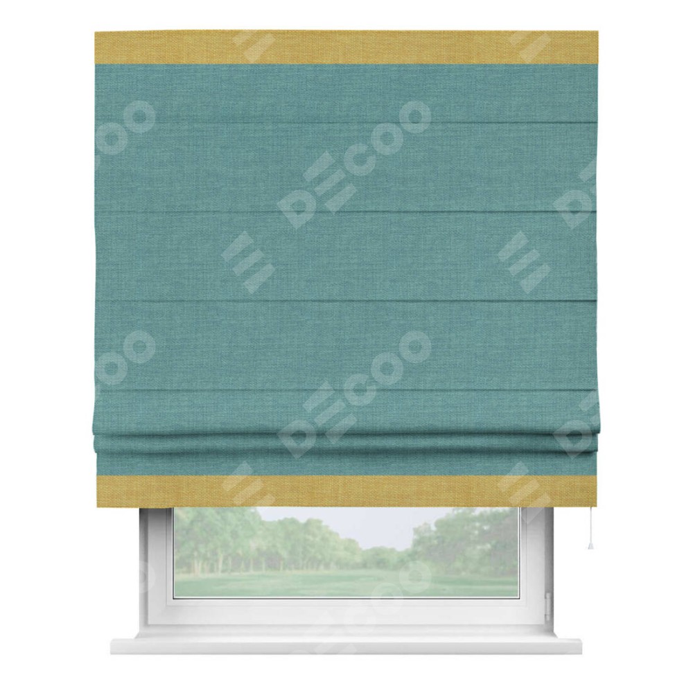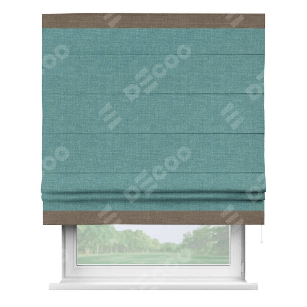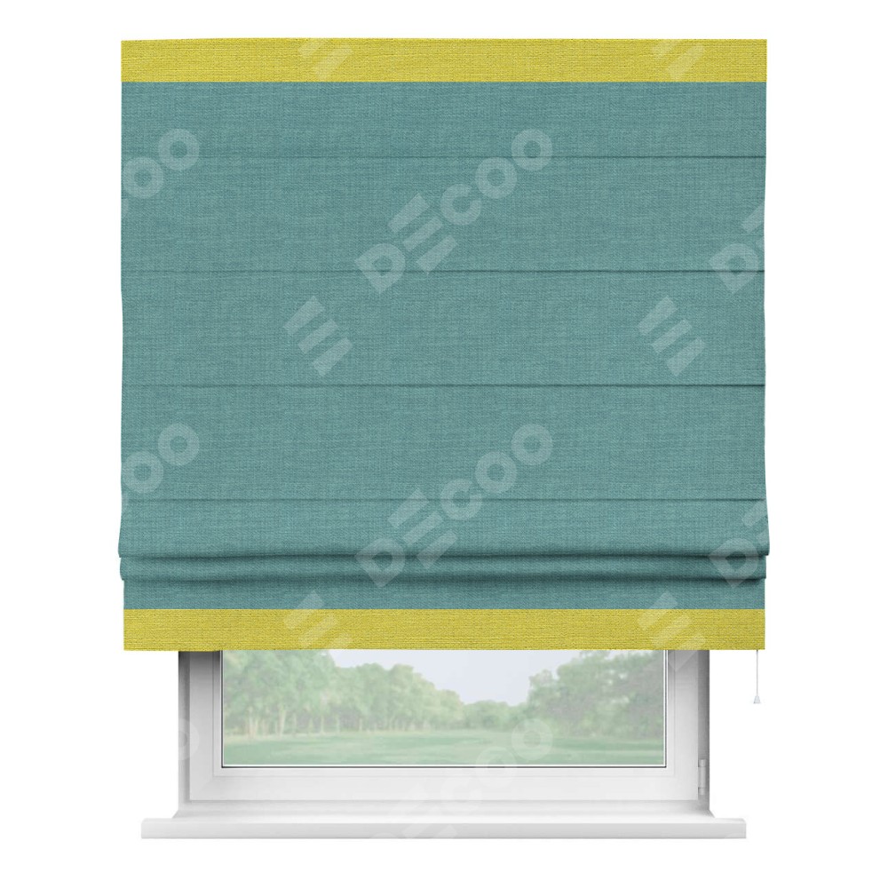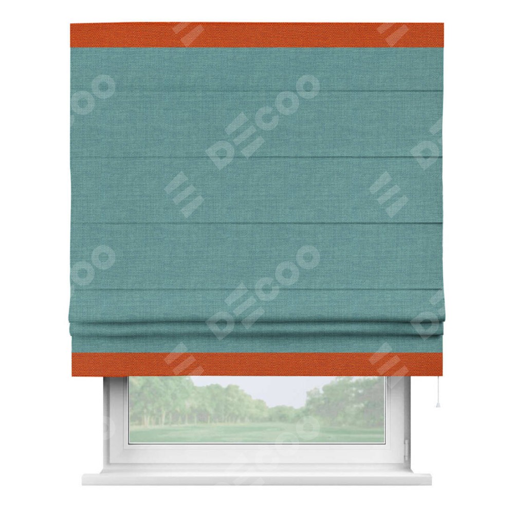 Римская штора «Кортин» с кантом Горизонт, для проема, ткань лён бирюза