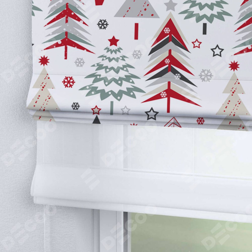 Римская штора день-ночь производителя «Cortin», используется для проёма, пошита из двух полотен, с лицевой блэкаут с нанесением сублимационной печати «Волшебство зимы», вторая ткань тюль (по стандарту комплектуется тюль белого цвета артикул V-01). Имеет универсальный механизм и подходит для монтажа: на потолок, на стену и в нишу.