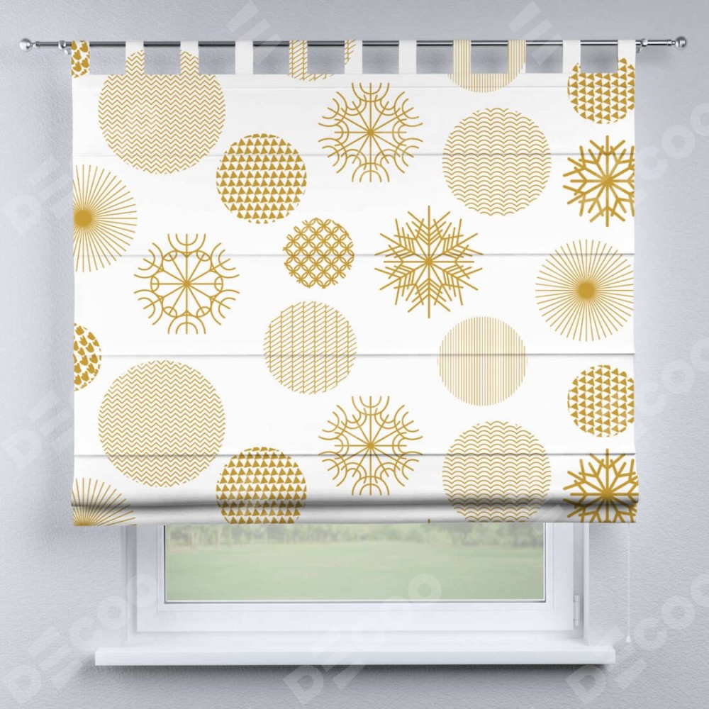 Римская штора на петлях «Золотые шары» предоставлена в следующих характеристиках: