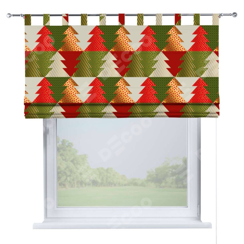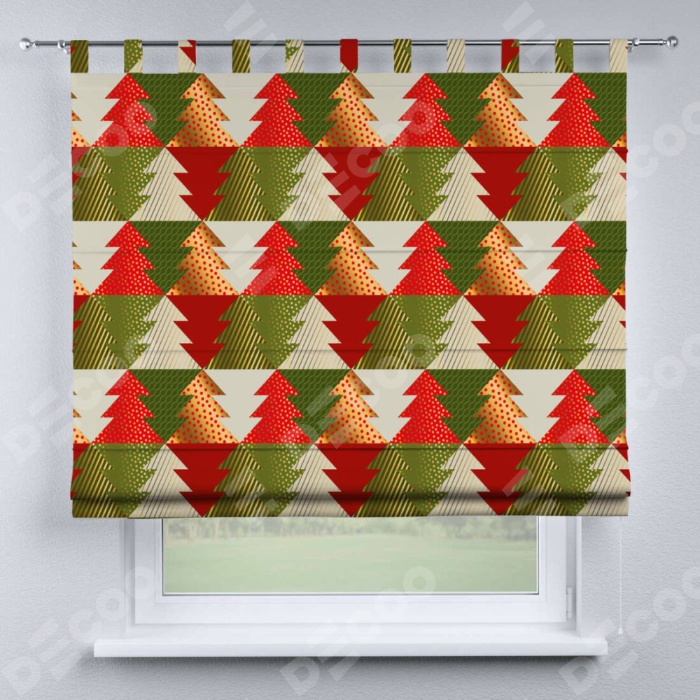 Римская штора производителя «Cortin», используется для проёма, пошита из ткани блэкаут с нанесением сублимационной печати «Новогоднее украшение». Данная модель пошита на петлях, комплектуется на выбор круглым карнизом и подходит для монтажа на стену. Римская штора на петлях имеет простую систему регулировки высоты, отличительным преимуществом данной модели является простой способ монтажа. Достаточно повесить ее на трубу и штора готова!