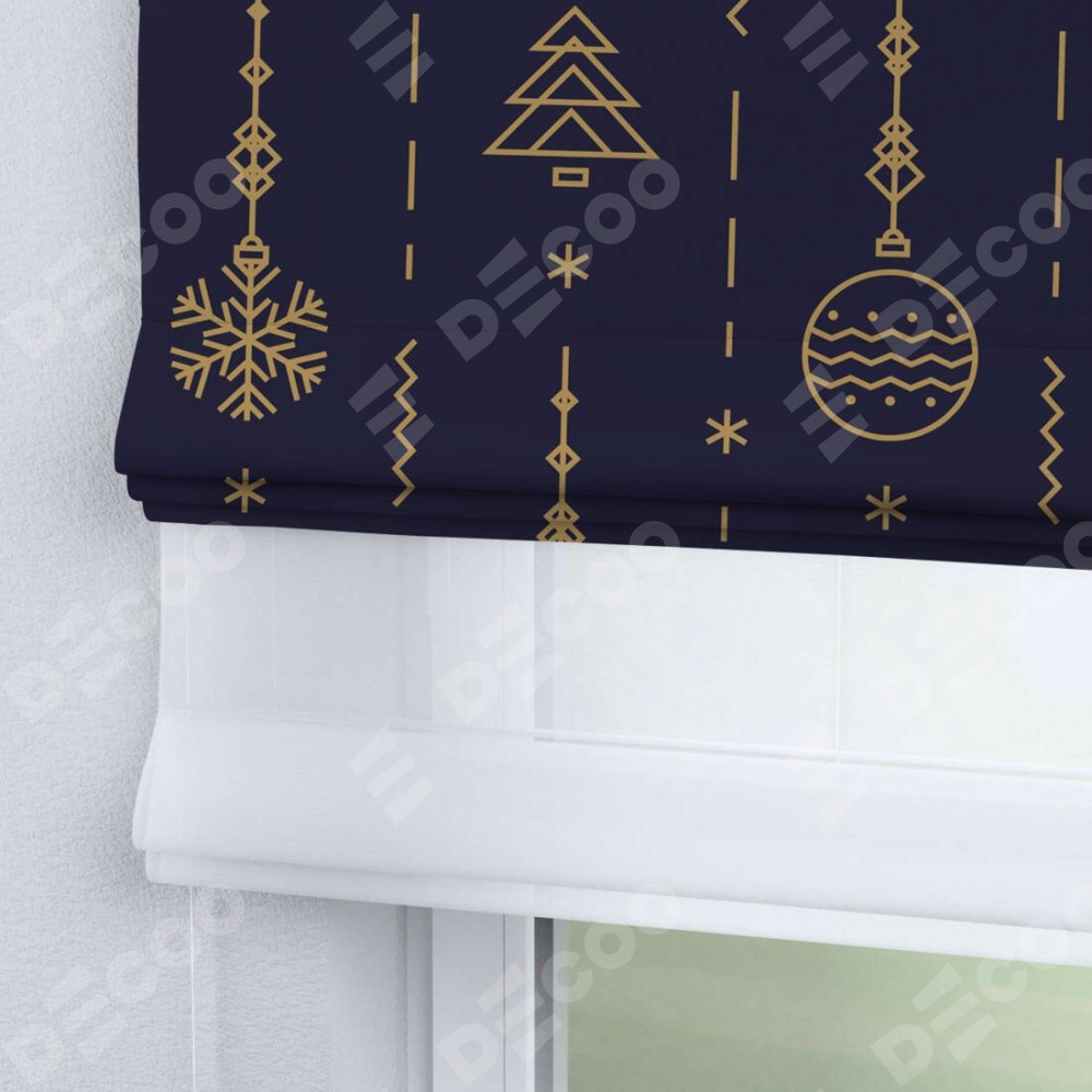 Римская штора день-ночь производителя «Cortin», используется для проёма, пошита из двух полотен, с лицевой блэкаут с нанесением сублимационной печати «Сияние гирлянд», вторая ткань тюль (по стандарту комплектуется тюль белого цвета артикул V-01). Имеет универсальный механизм и подходит для монтажа: на потолок, на стену и в нишу.