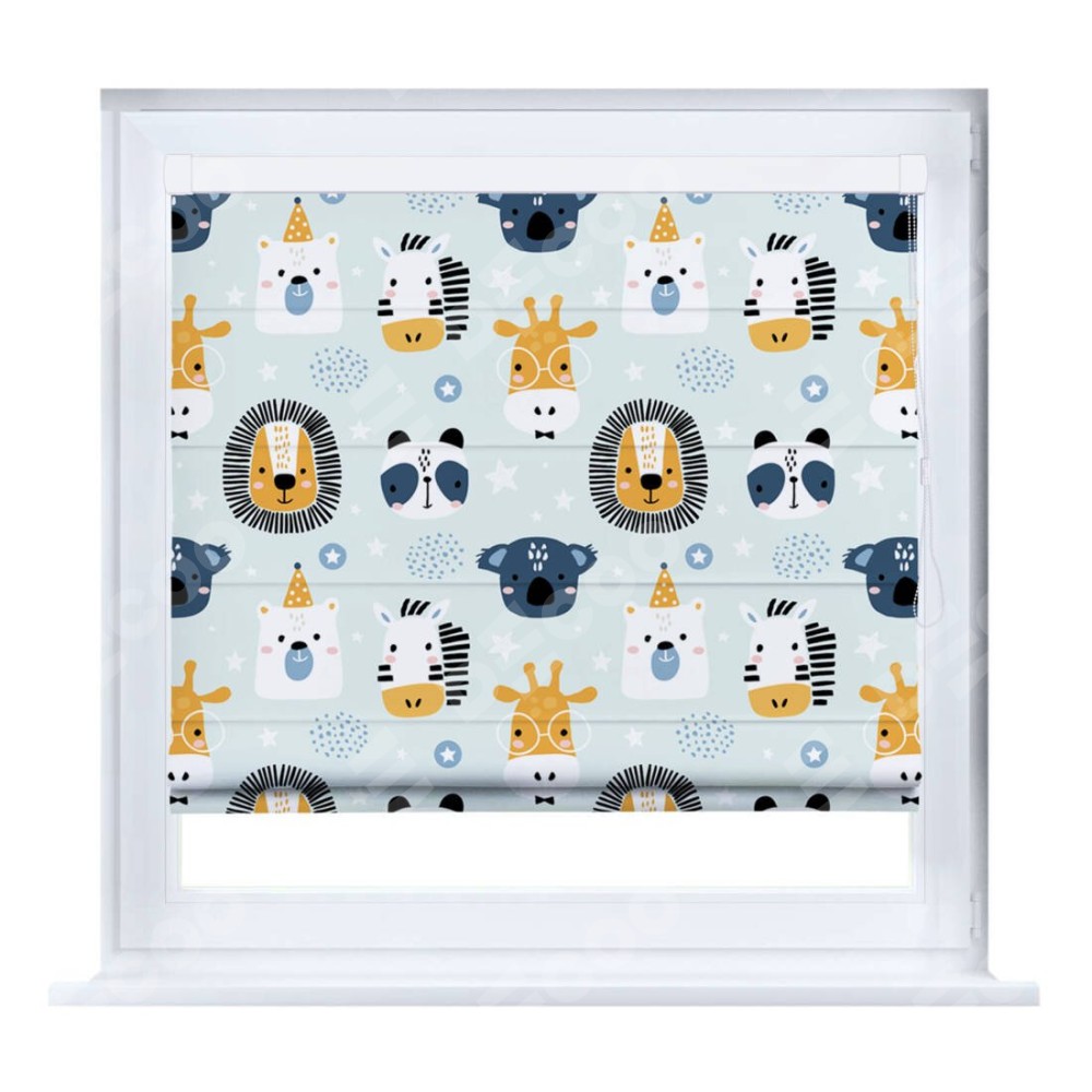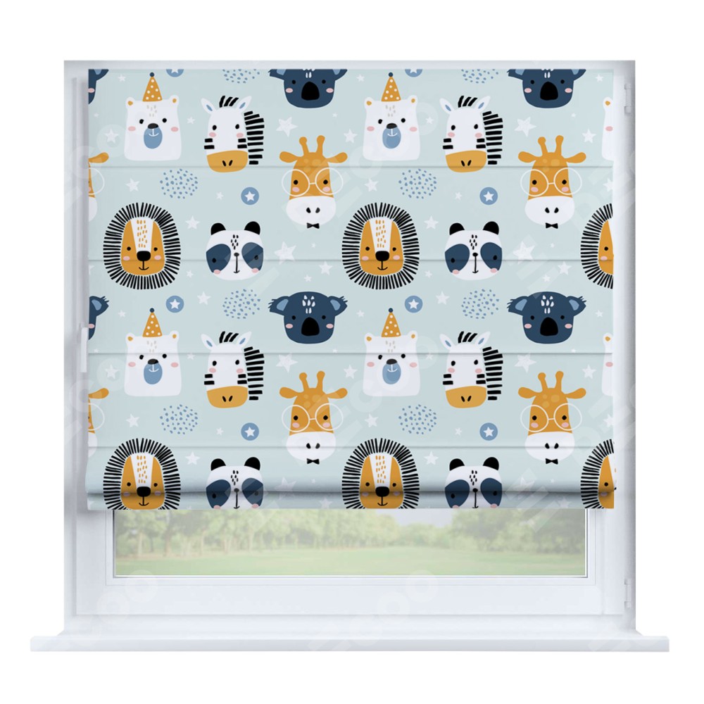 Римская штора производителя «Cortin», устанавливается на створку окна, пошита из ткани блэкаут с нанесением сублимационной печати «Чудесный зоопарк». Штора шьётся по индивидуальным размерам, для данного типа римской шторы возможная ширина от 35 до 150 см., высота до 250 см.
