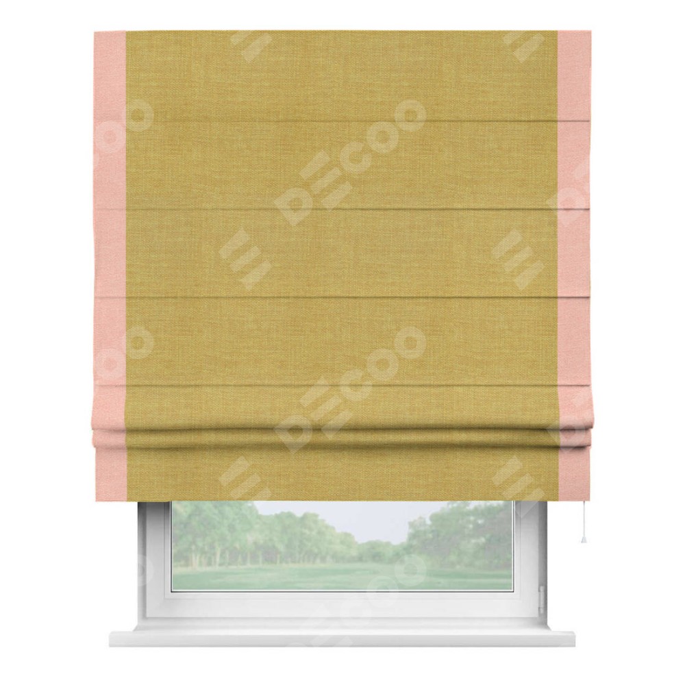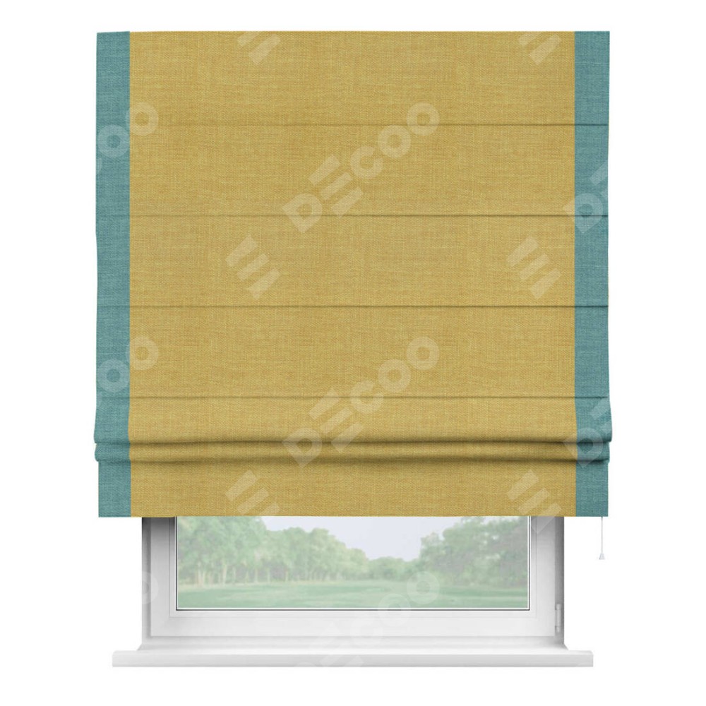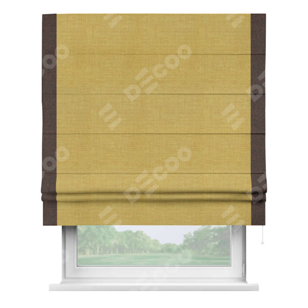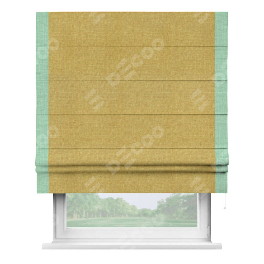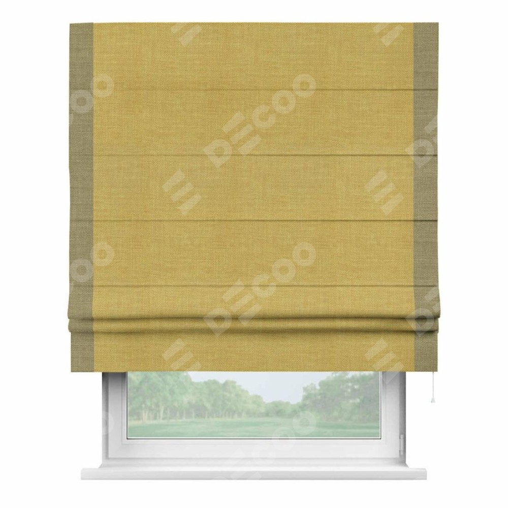 Римская штора «Кортин» с кантом Стрим Дуо, для проема, ткань лён горчичный