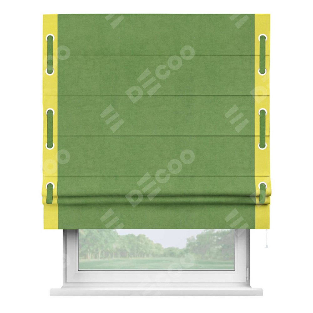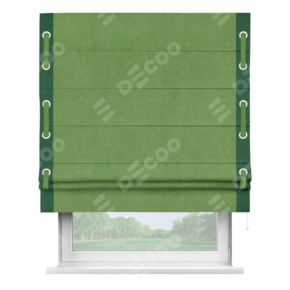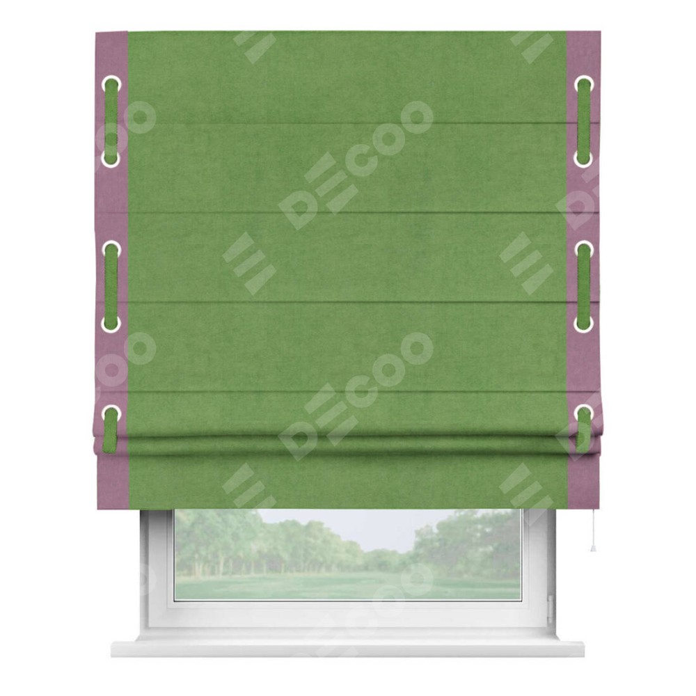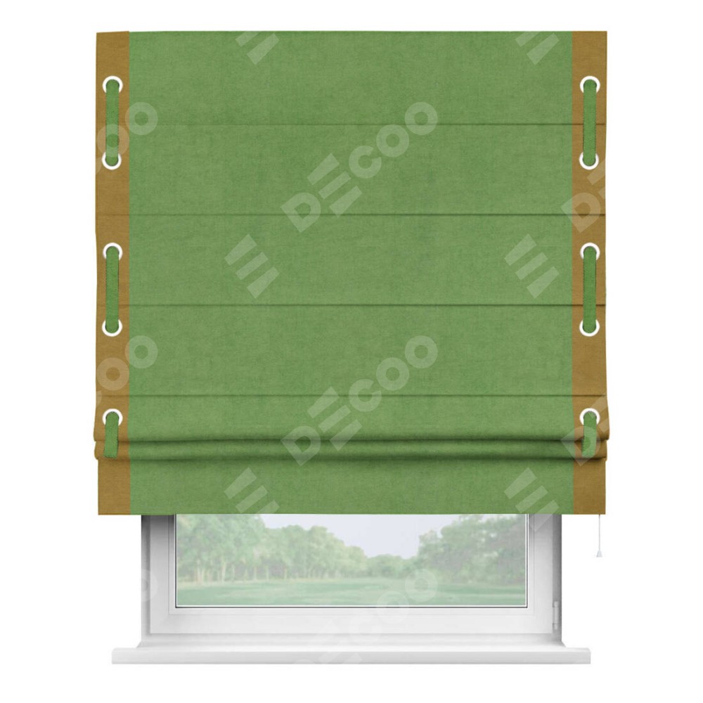 Римская штора «Кортин» с кантом Стрим Дуо (люверсы с пояском), для проема, ткань вельвет салатовый