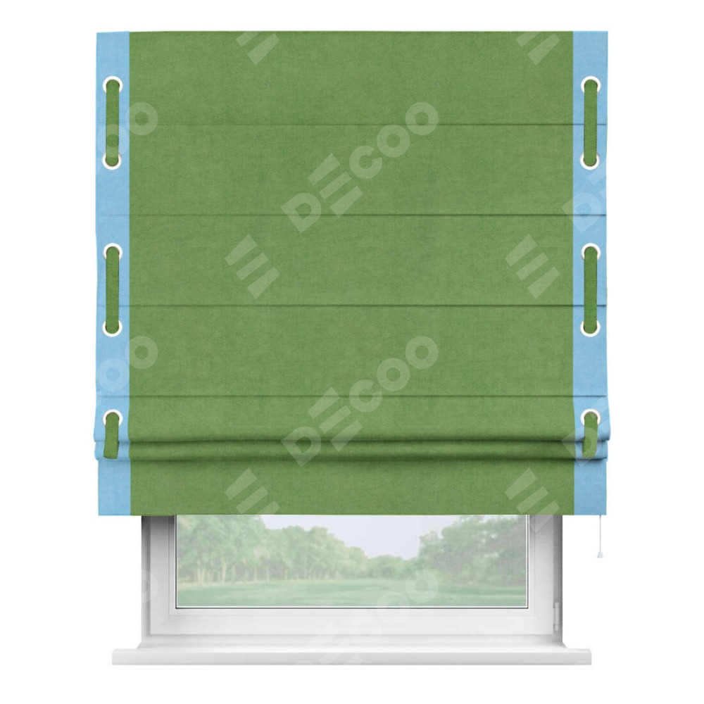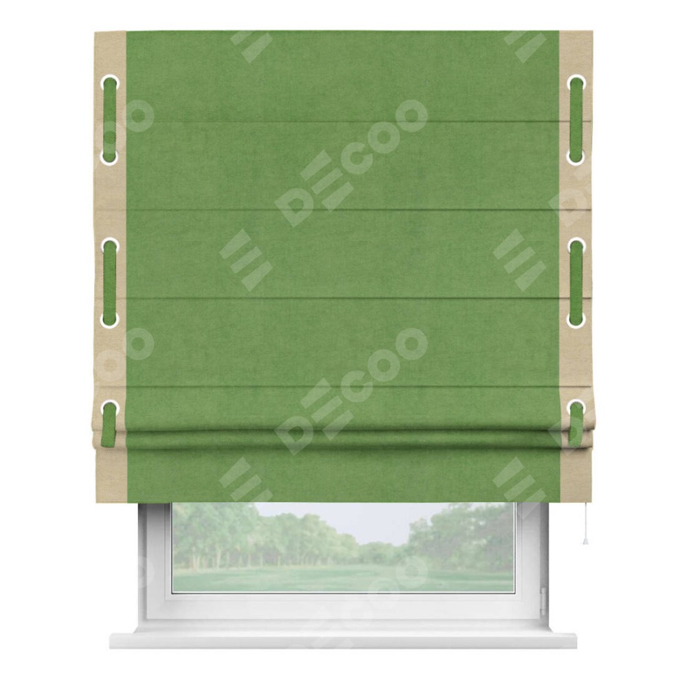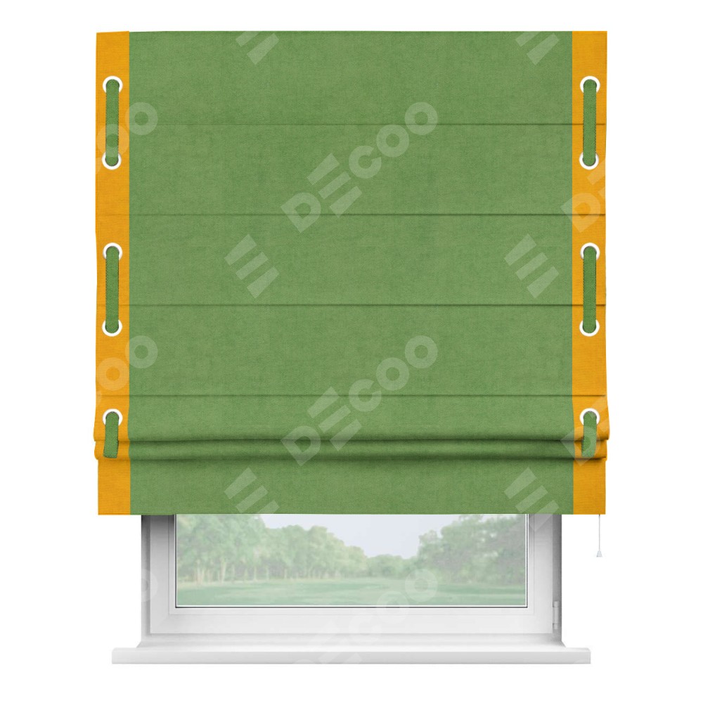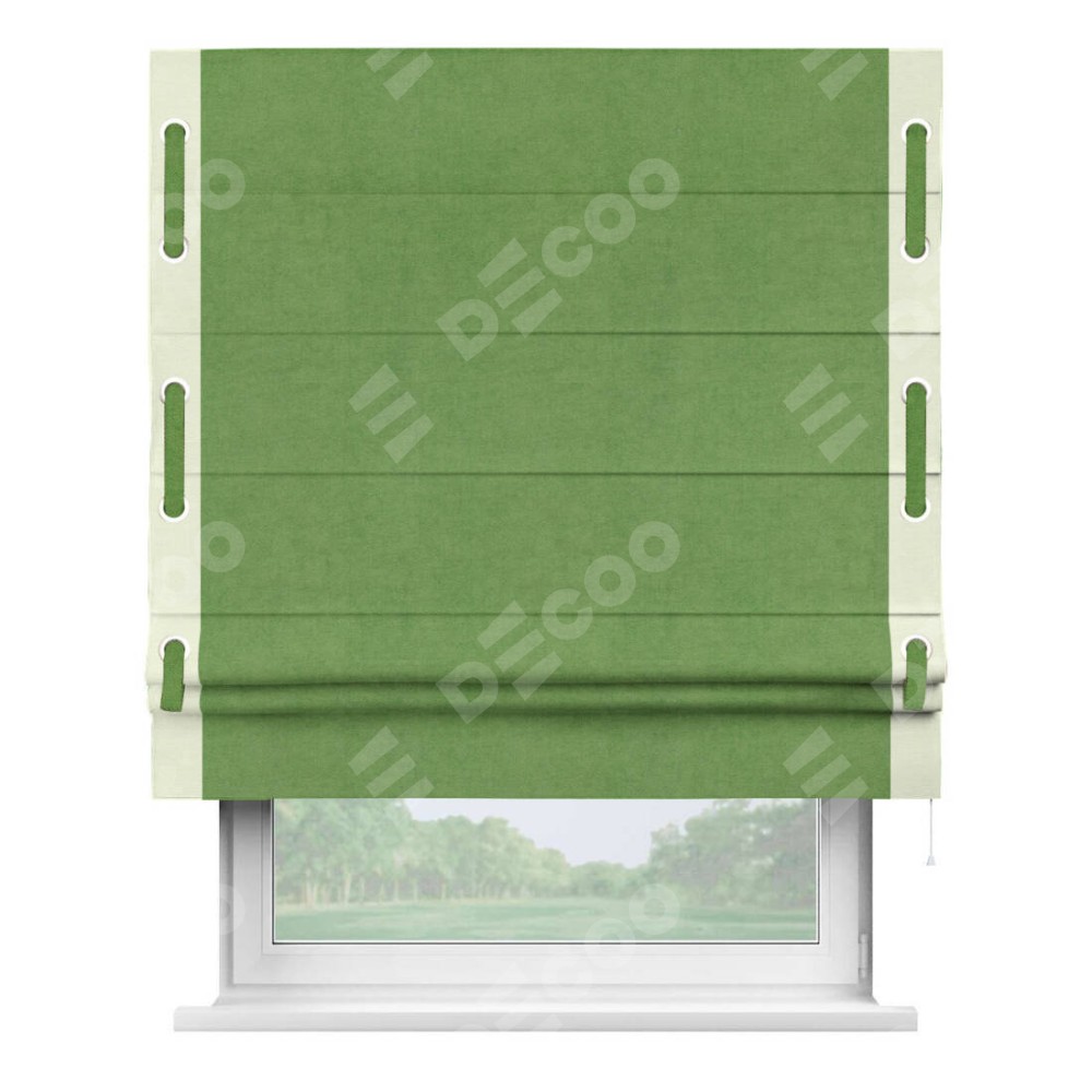 Римская штора «Кортин» с кантом Стрим Дуо (люверсы с пояском), для проема, ткань вельвет салатовый