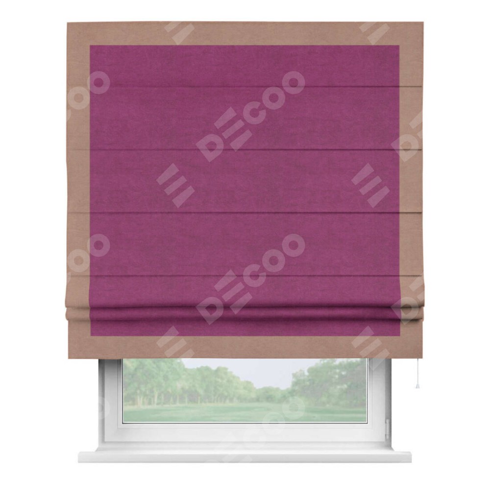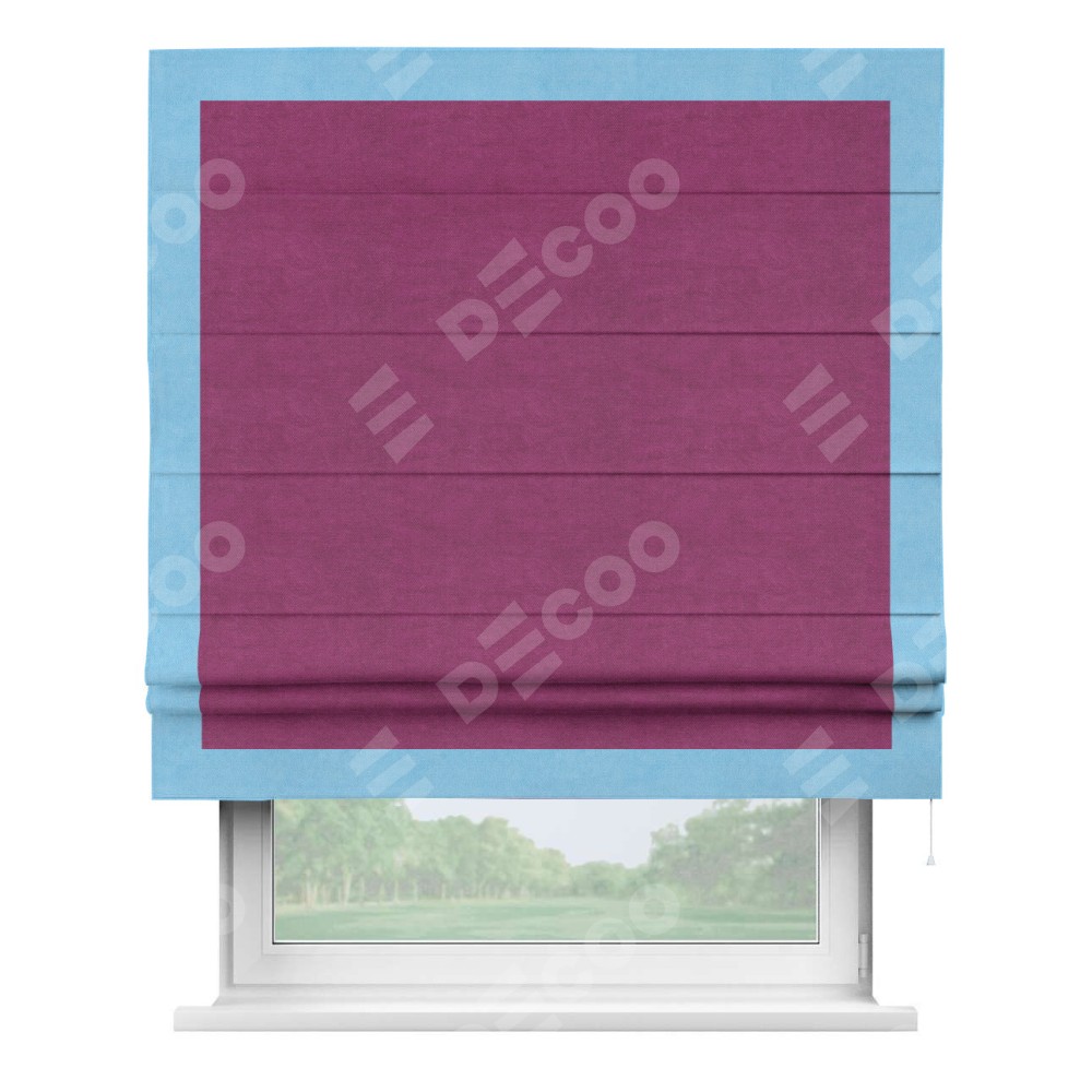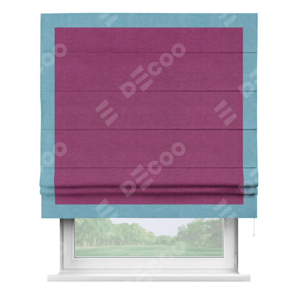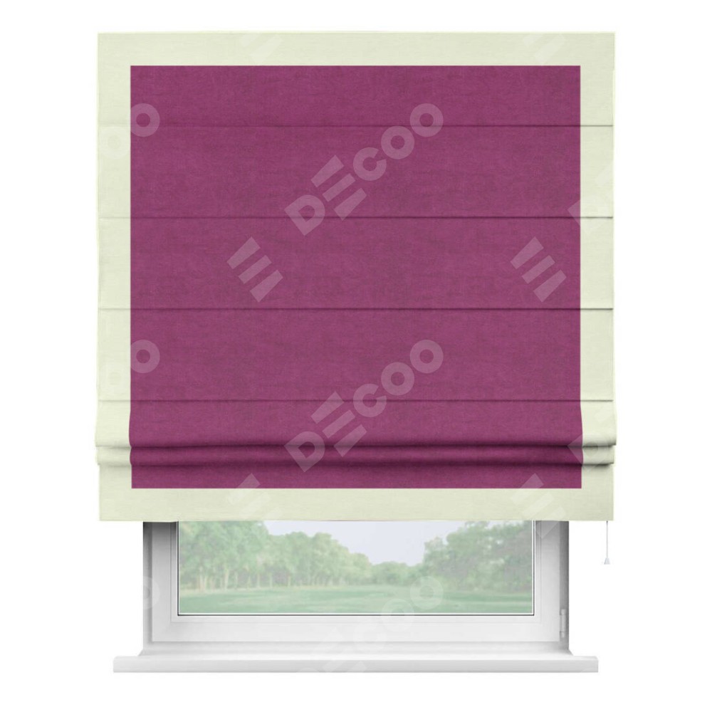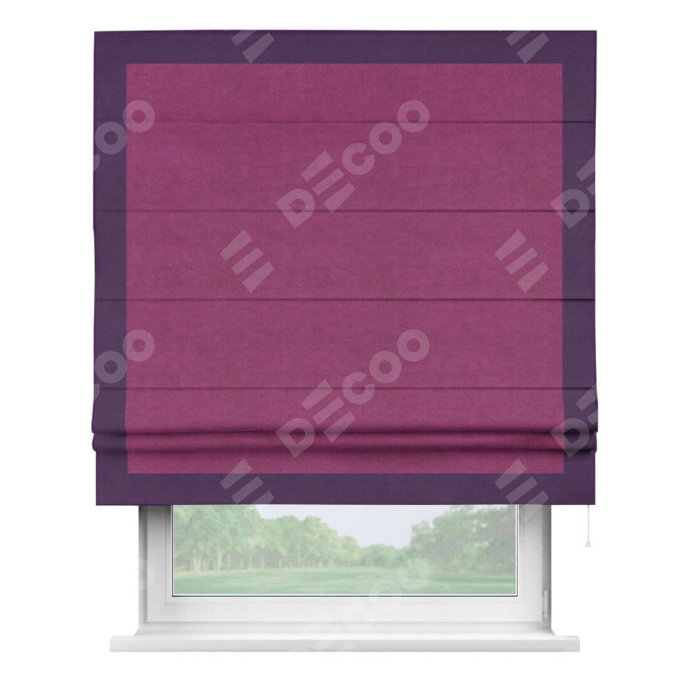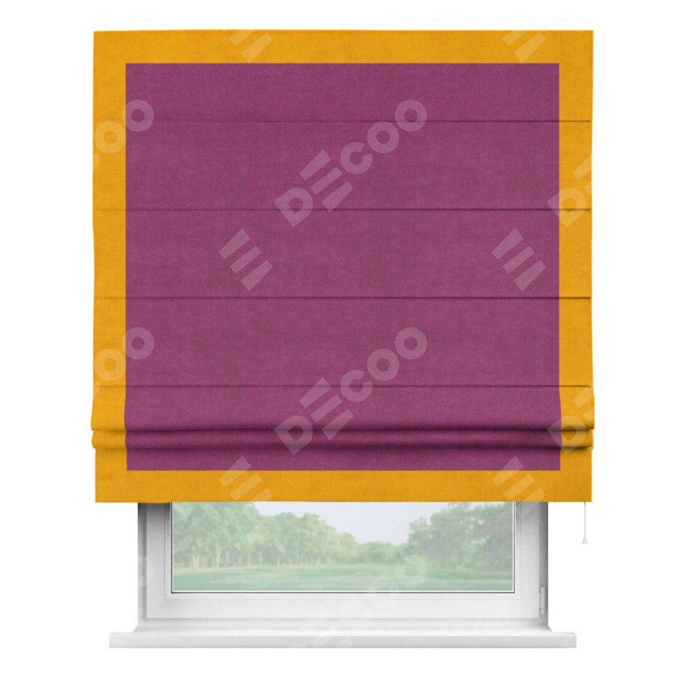 Римская штора «Кортин» с кантом Чесс, для проема, ткань вельвет фиолетовый
