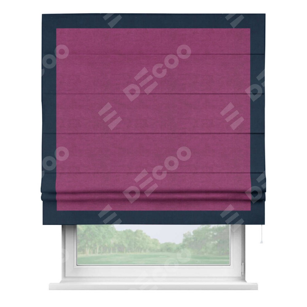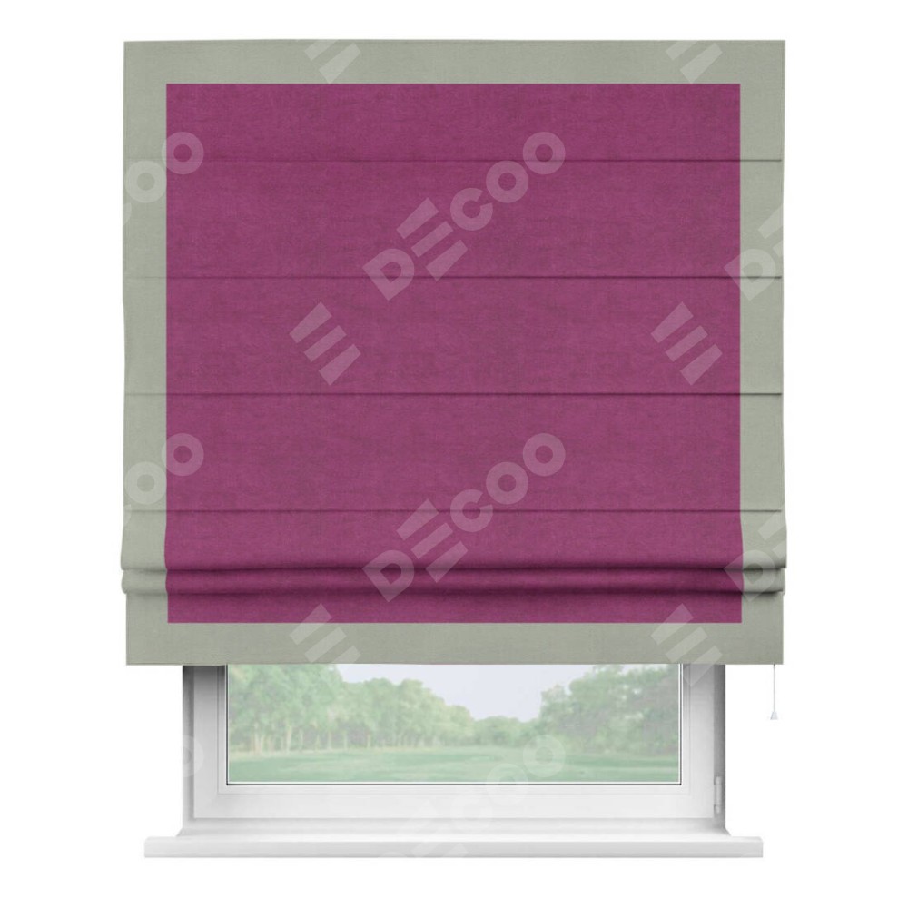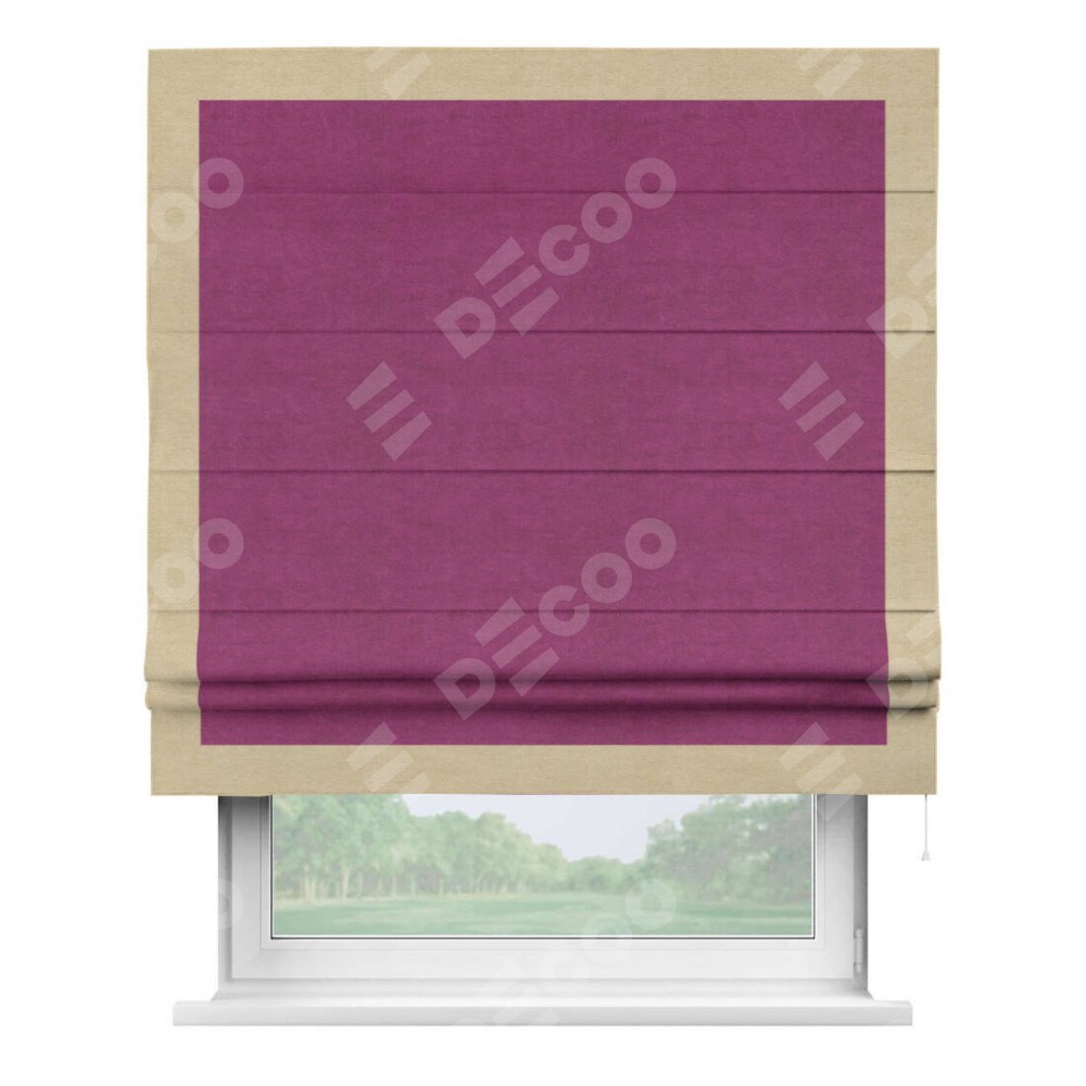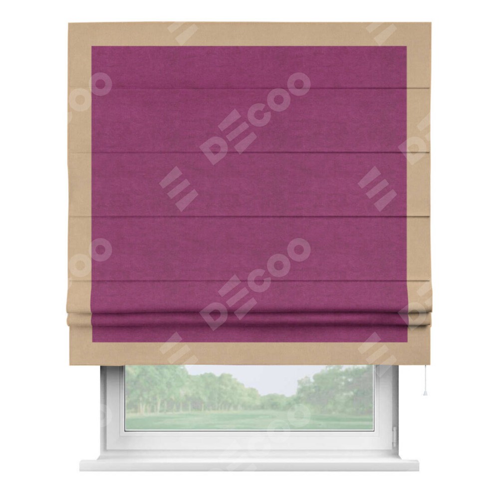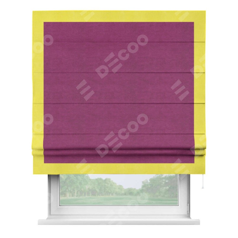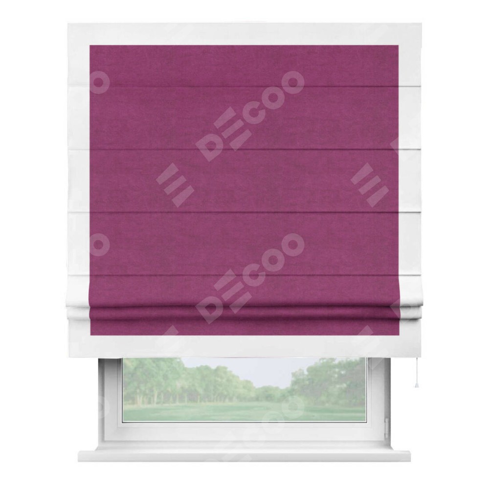 Римская штора «Кортин» с кантом Чесс, для проема, ткань вельвет фиолетовый