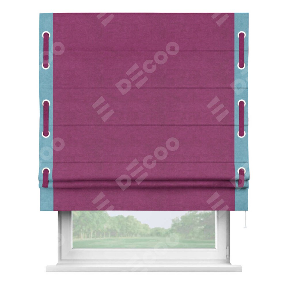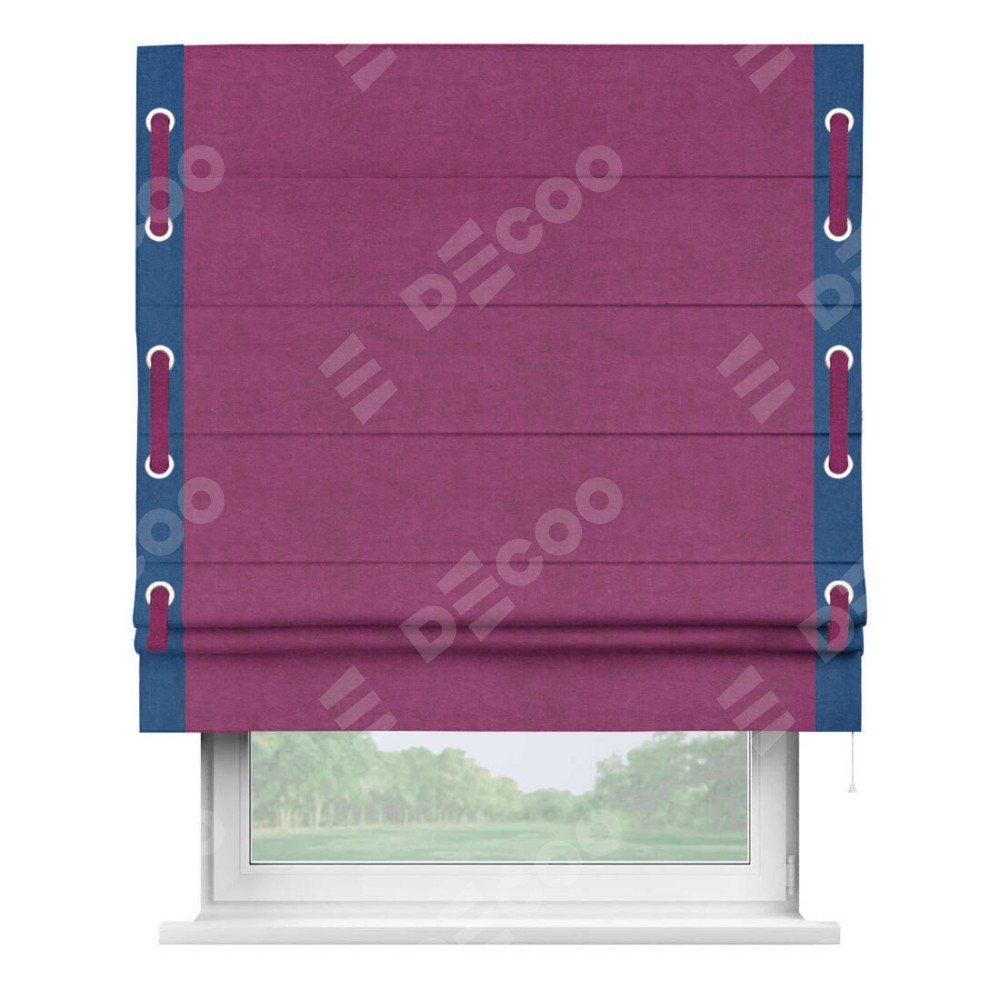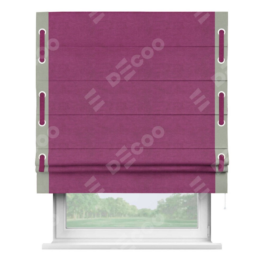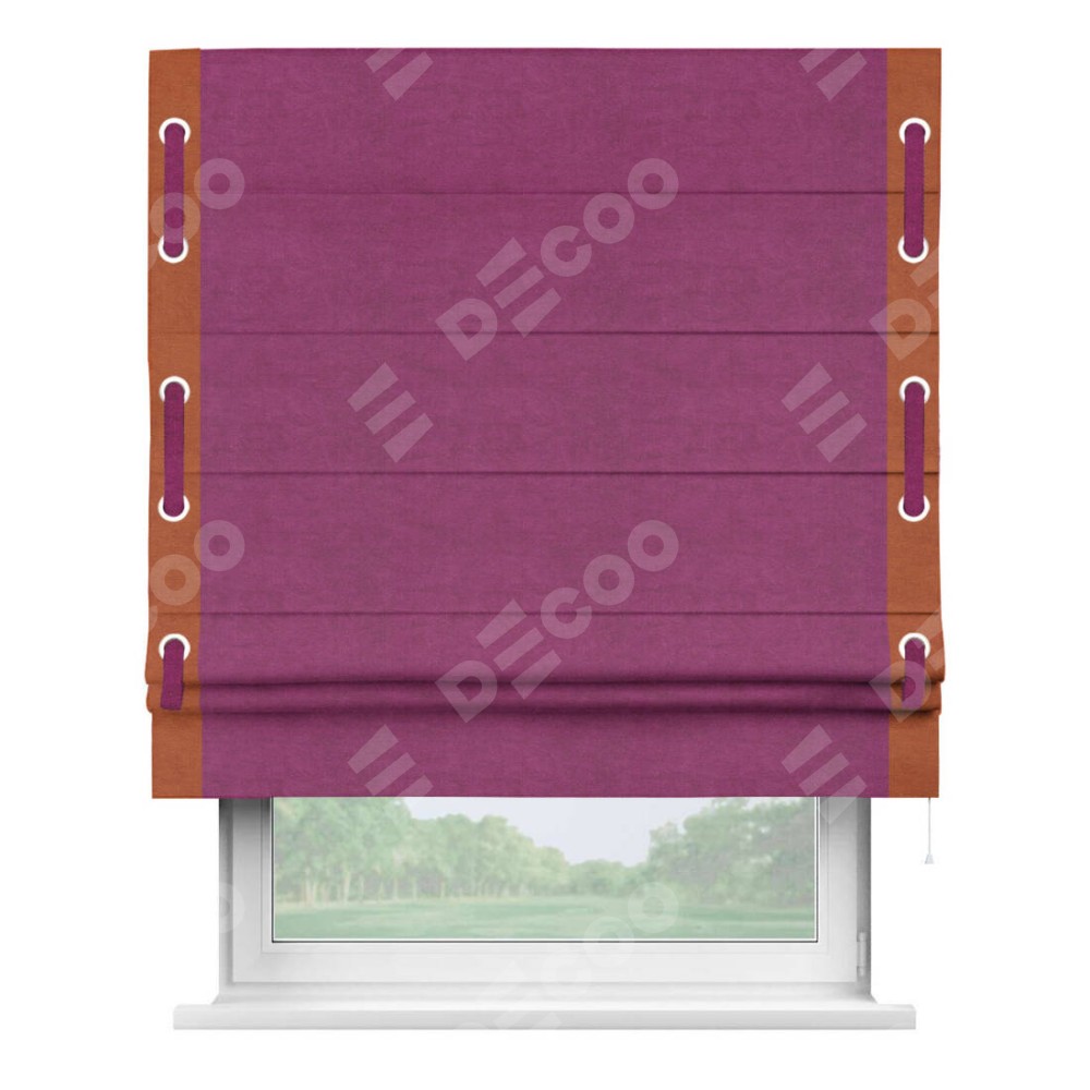 Римская штора «Кортин» с кантом Стрим Дуо (люверсы с пояском), для проема, ткань вельвет фиолетовый