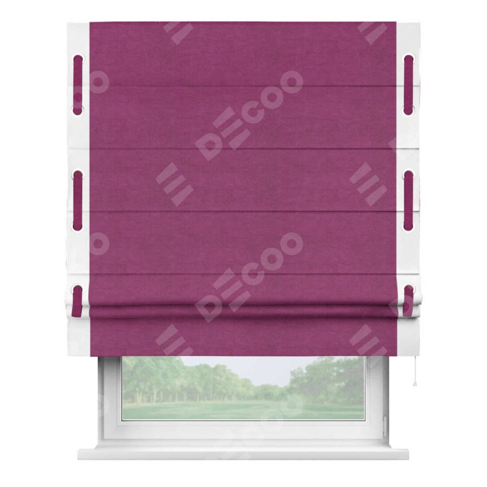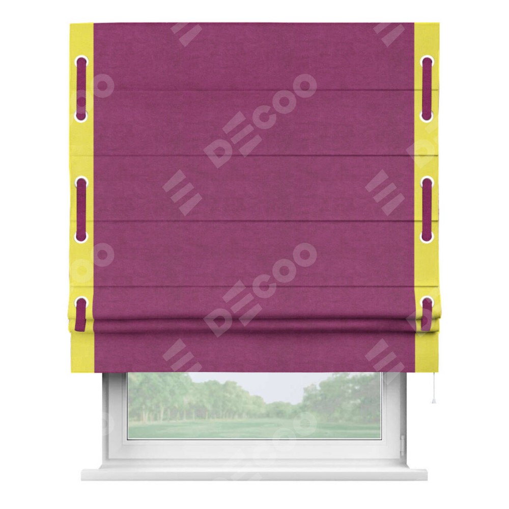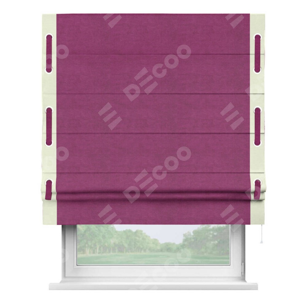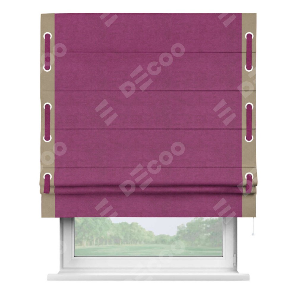 Римская штора «Кортин» с кантом Стрим Дуо (люверсы с пояском), для проема, ткань вельвет фиолетовый