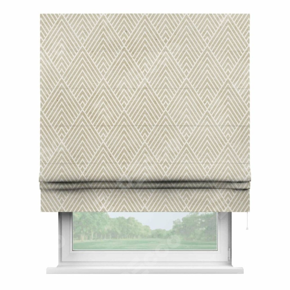 Римская штора «Кортин» для проема «Арлекино» отлично подойдёт для интерьера: в гостиную, в спальню и на балкон.