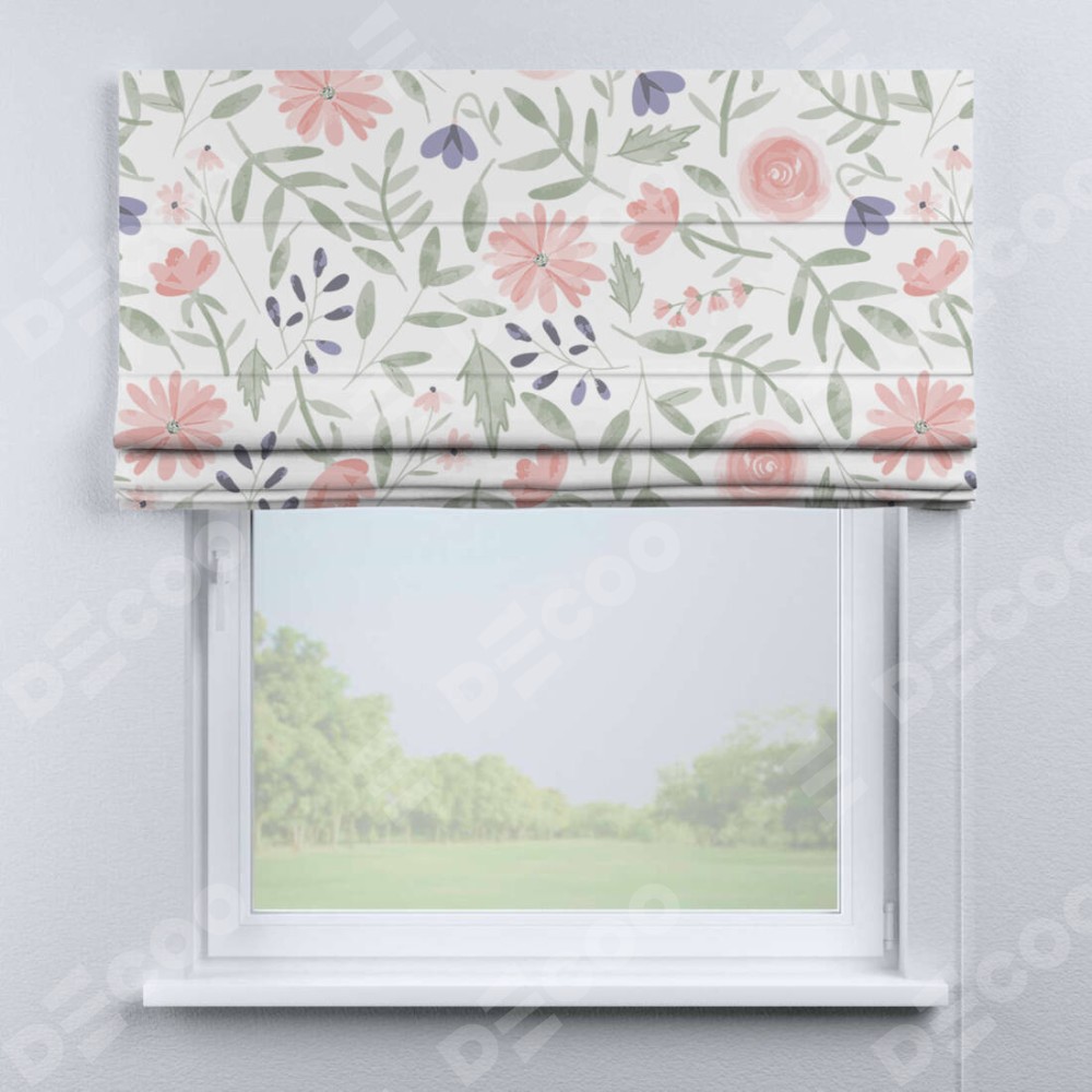 Римская штора «Кортин» для проема «Изысканные цветы» отлично подойдёт для интерьера: в гостиную, в детскую и на балкон.