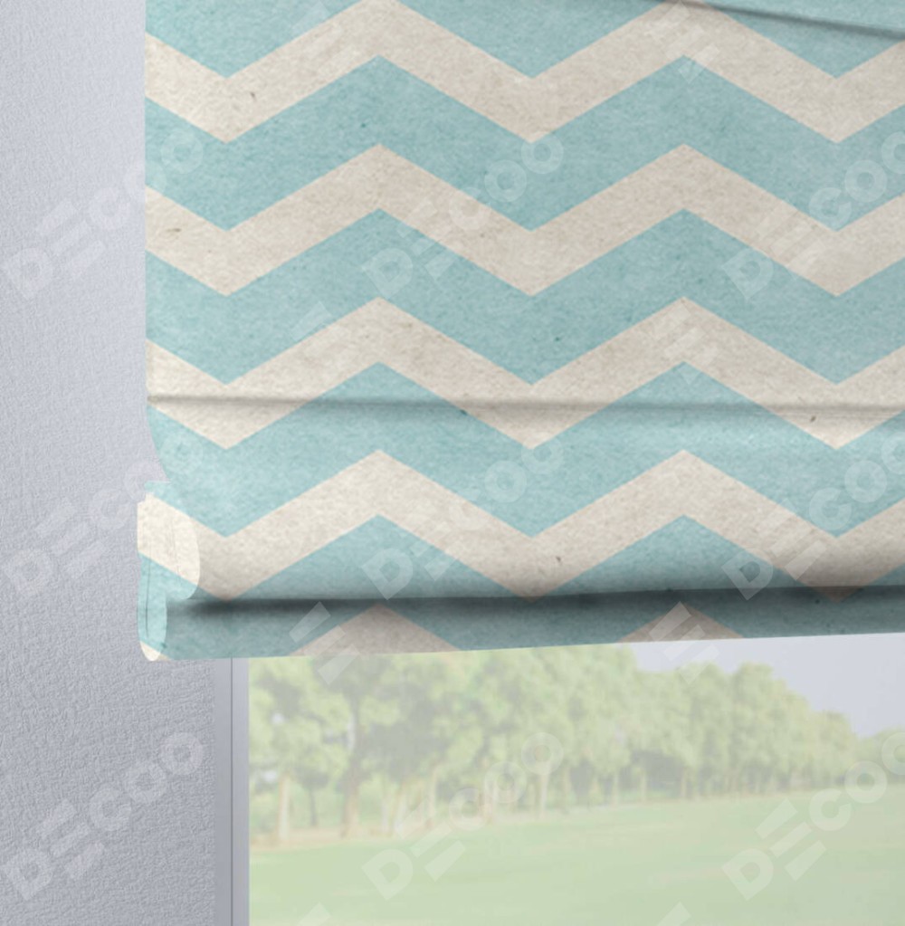 Римская штора производителя «Cortin», используется для проёма, пошита из ткани блэкаут с нанесением сублимационной печати «Голубой шеврон». Данная модель пошита на петлях, комплектуется на выбор круглым карнизом и подходит для монтажа на стену. Римская штора на петлях имеет простую систему регулировки высоты, отличительным преимуществом данной модели является простой способ монтажа. Достаточно повесить ее на трубу и штора готова!