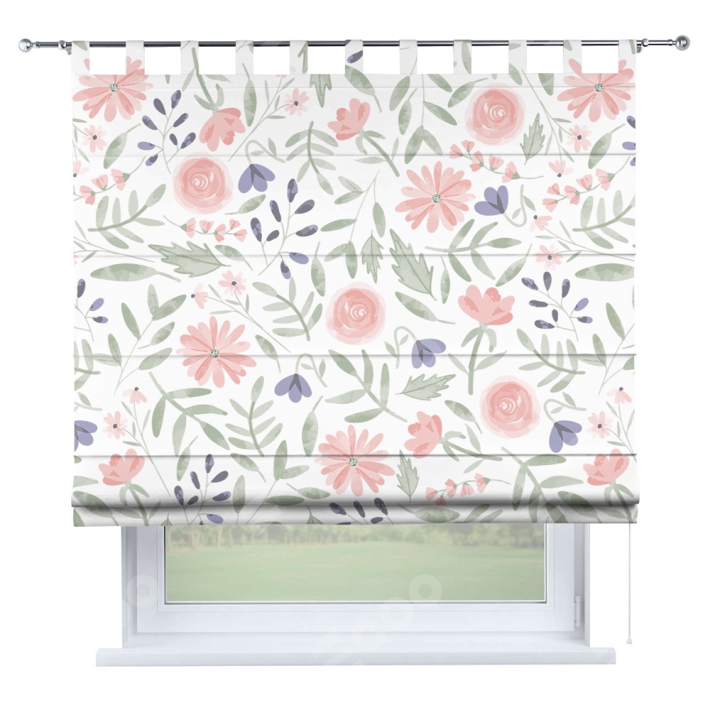 Римская штора производителя «Cortin», используется для проёма, пошита из ткани блэкаут с нанесением сублимационной печати «Изысканные цветы». Данная модель пошита на петлях, комплектуется на выбор круглым карнизом и подходит для монтажа на стену. Римская штора на петлях имеет простую систему регулировки высоты, отличительным преимуществом данной модели является простой способ монтажа. Достаточно повесить ее на трубу и штора готова!