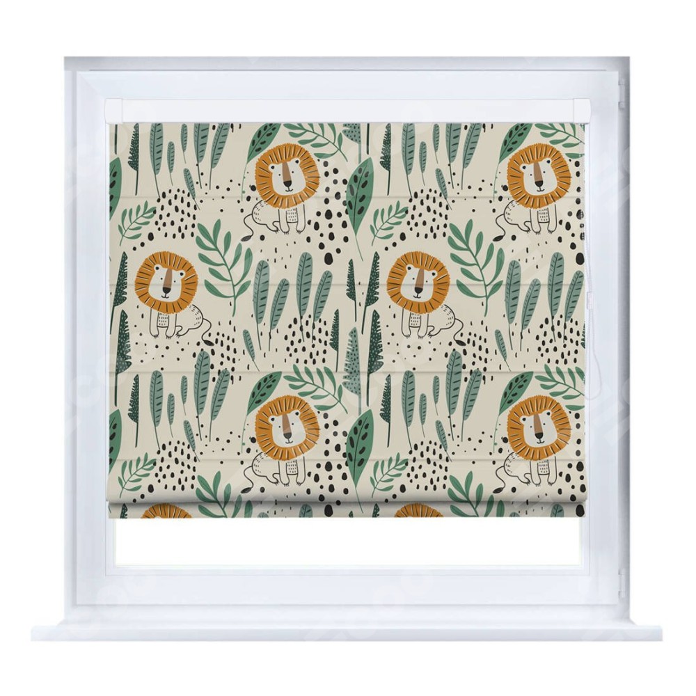 Римская штора «Кортин» на створку «Лев из джунглей» отлично подойдёт для интерьера: в детскую.