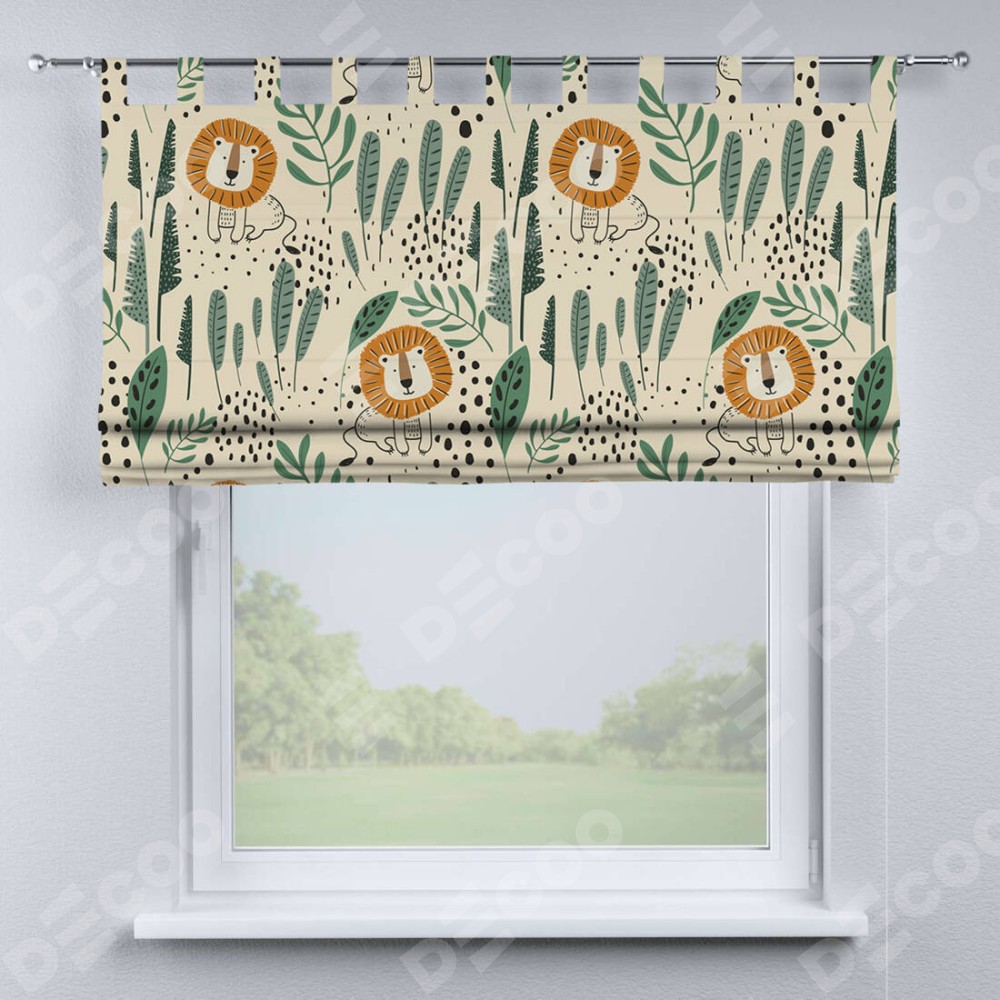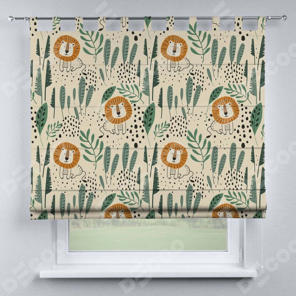 Римская штора производителя «Cortin», используется для проёма, пошита из ткани блэкаут с нанесением сублимационной печати «Лев из джунглей». Данная модель пошита на петлях, комплектуется на выбор круглым карнизом и подходит для монтажа на стену. Римская штора на петлях имеет простую систему регулировки высоты, отличительным преимуществом данной модели является простой способ монтажа. Достаточно повесить ее на трубу и штора готова!