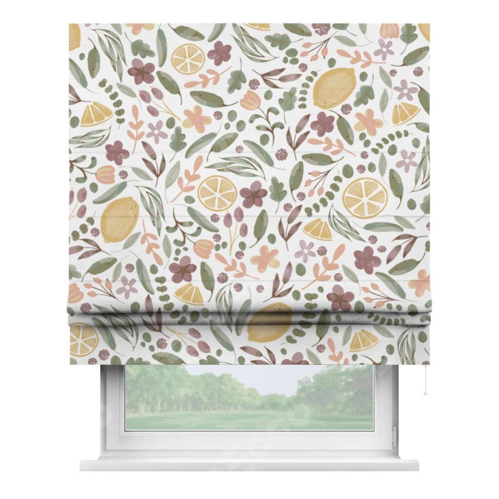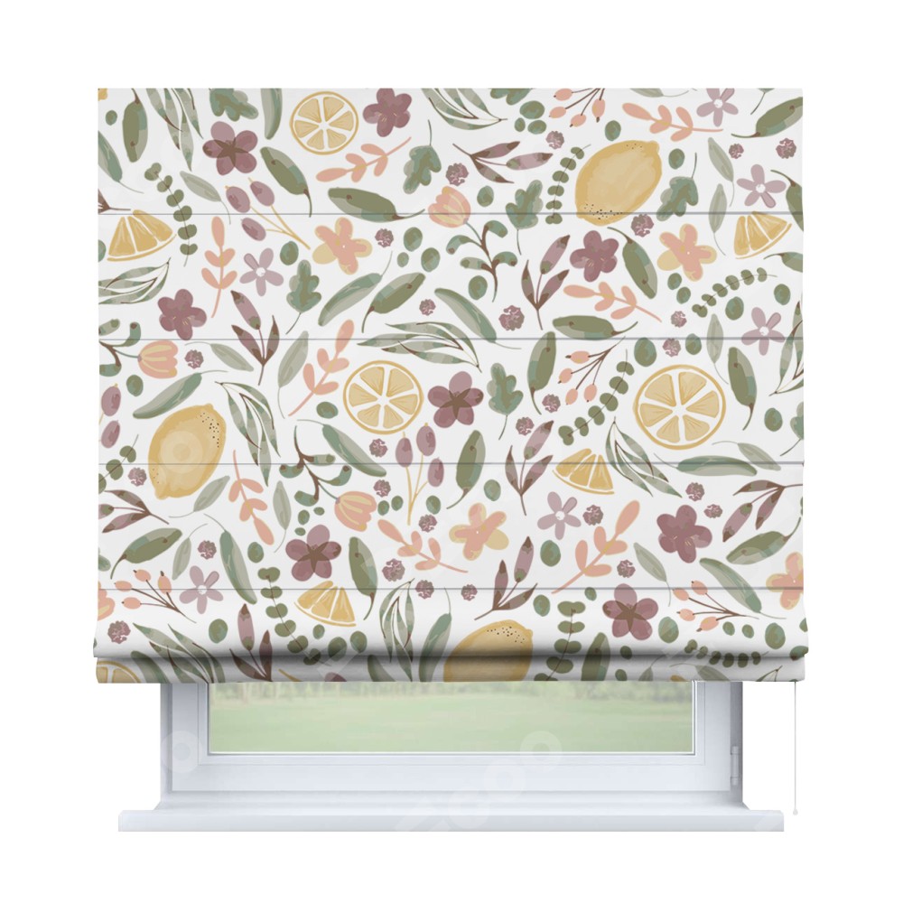 Римская штора «Кортин» для проема «Лимоны и цветы» предоставлена в следующих характеристиках: