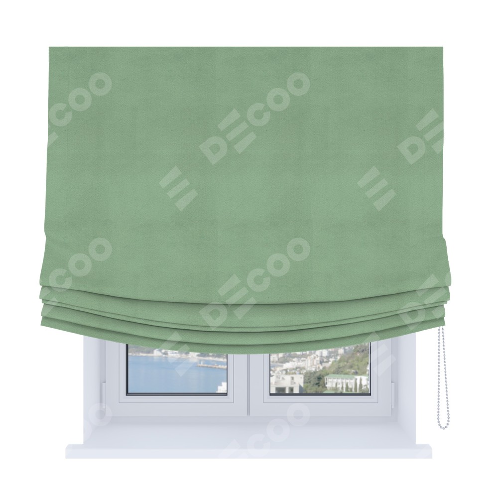 Римская штора Soft производителя «Cortin», используется для проёма, пошита из ткани бархат оливковый, артикул ткани 18746. Имеет универсальный механизм и подходит для монтажа: на потолок, на стену и в нишу. В отличие от стандартных римских штор, римская штора Soft не имеет горизонтальных вставок и нижнего отвеса. Это позволяет ткани произвольно драпироваться в свободные мягкие складки.
