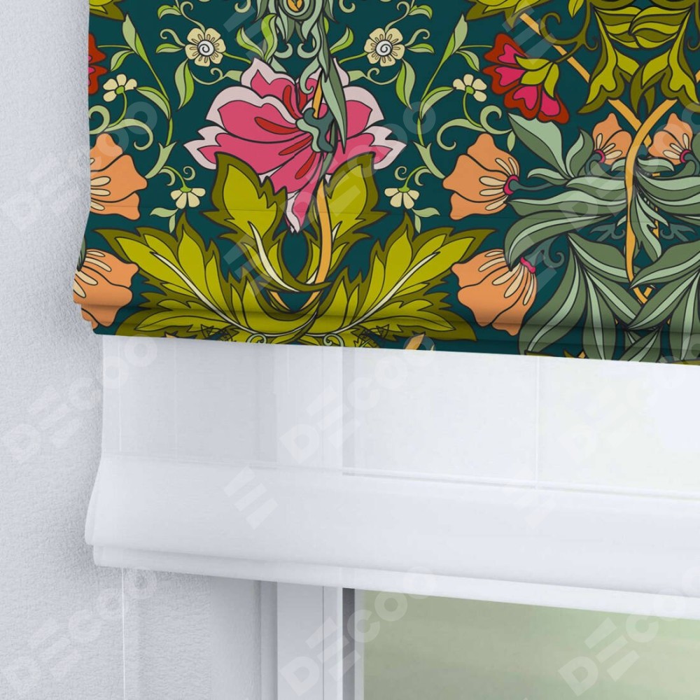 Римская штора «Кортин» день-ночь «Цветок морриса» доступна к заказу по любым размерам. Рабочий артикул: 2204. будет зависеть от выбранных размеров и стартует от 5 300 руб. В интернет-магазине Decoo вы сможете заказать товар в любых вариациях.