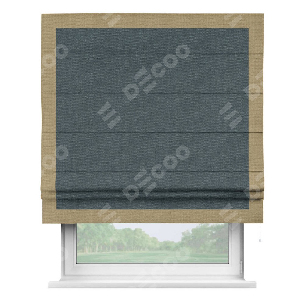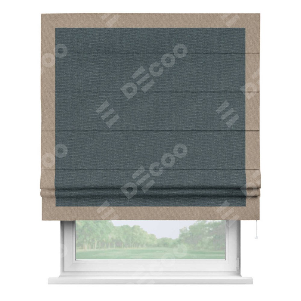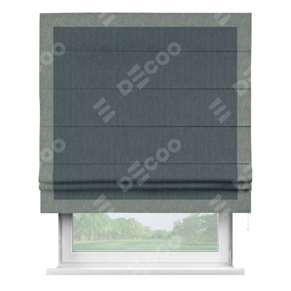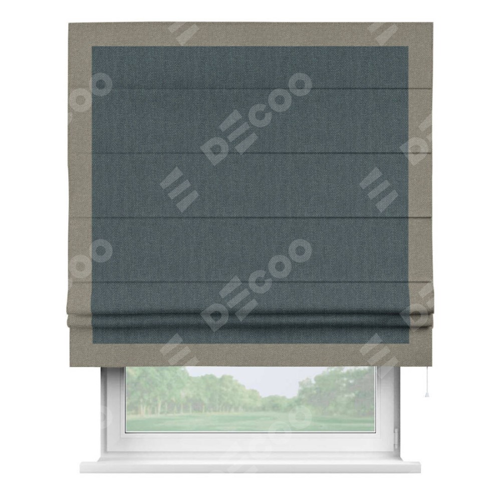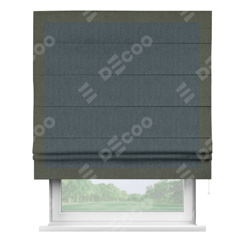 Римская штора «Кортин» с кантом Чесс, для проема, ткань лён димаут, серо-синий