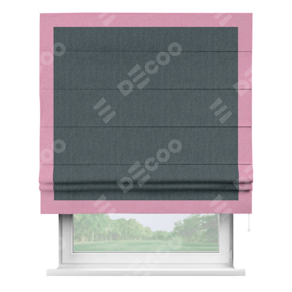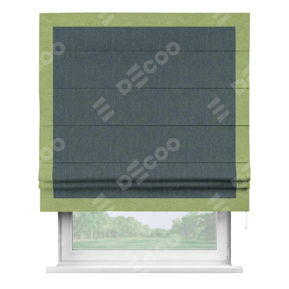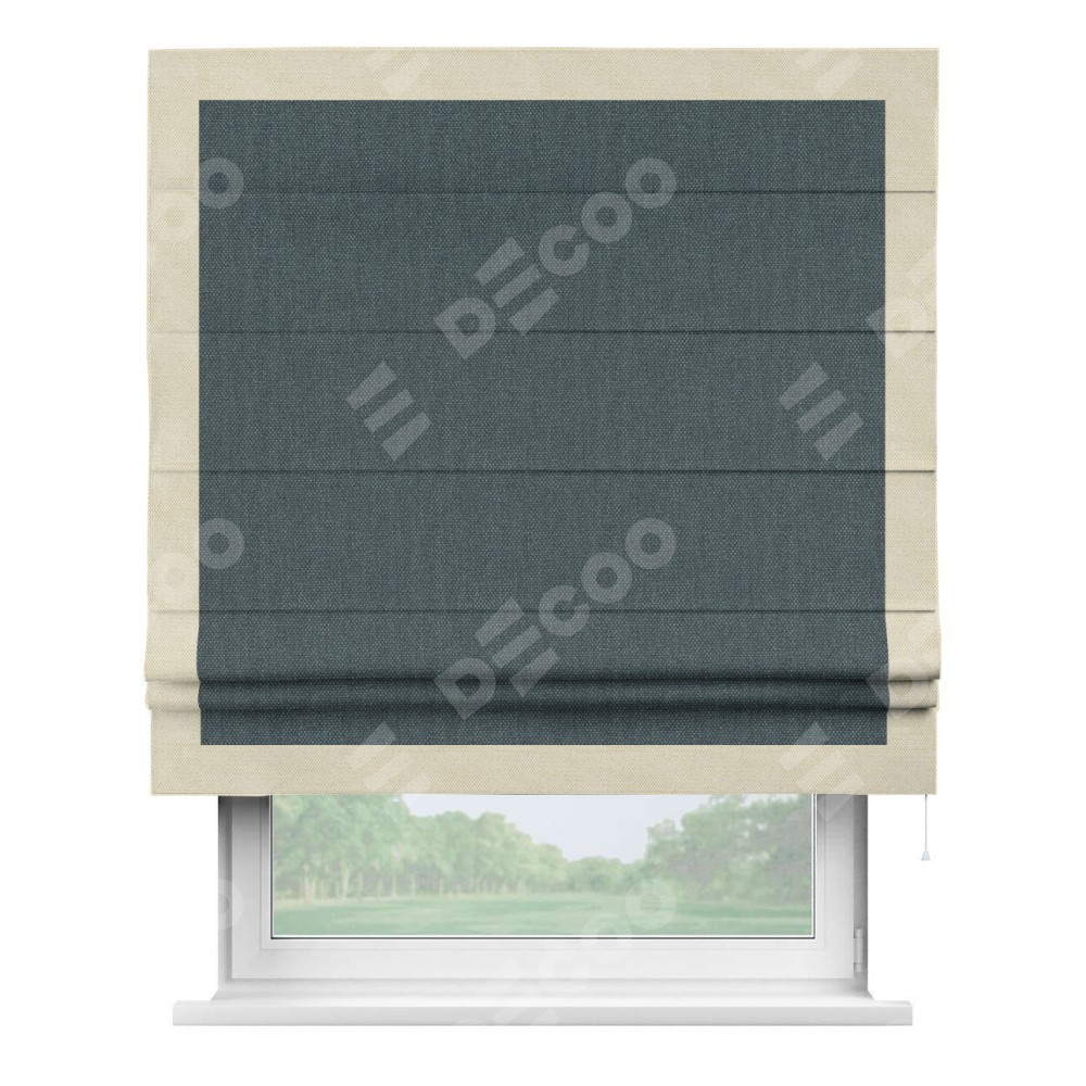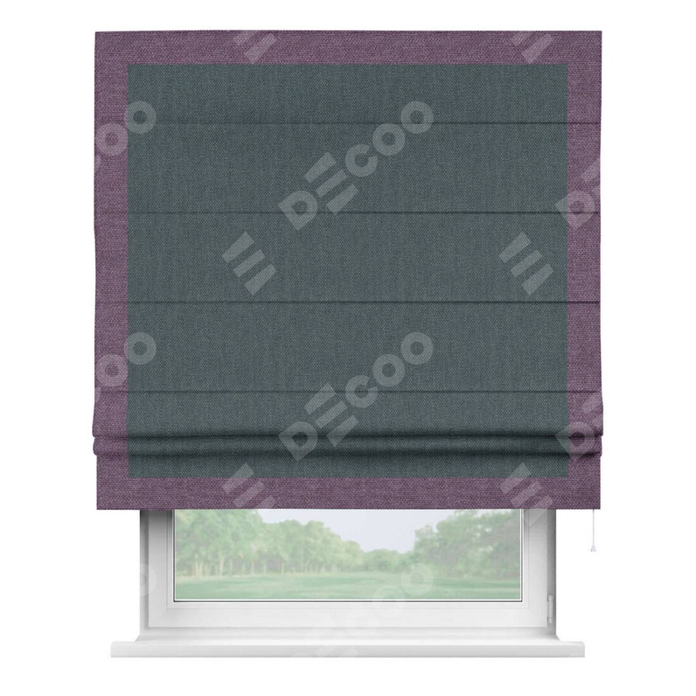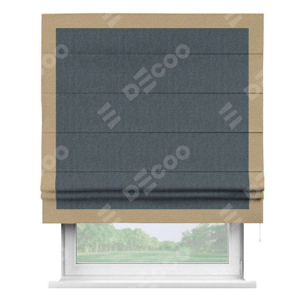 Римская штора «Кортин» с кантом Чесс, для проема, ткань лён димаут, серо-синий