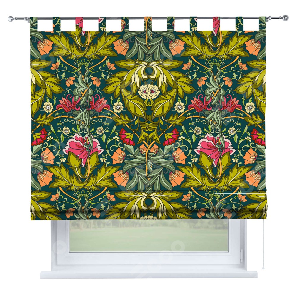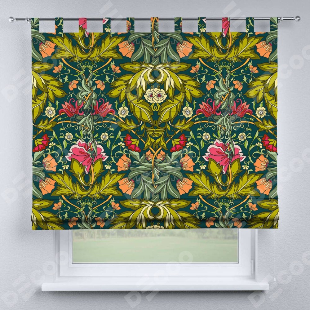 Римская штора производителя «Cortin», используется для проёма, пошита из ткани блэкаут с нанесением сублимационной печати «Цветок морриса». Данная модель пошита на петлях, комплектуется на выбор круглым карнизом и подходит для монтажа на стену. Римская штора на петлях имеет простую систему регулировки высоты, отличительным преимуществом данной модели является простой способ монтажа. Достаточно повесить ее на трубу и штора готова!