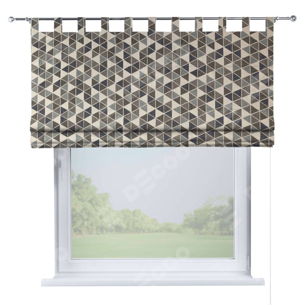 Римская штора производителя «Cortin», используется для проёма, пошита из ткани димаут «Треугольники синие», артикул ткани 23022. Данная модель пошита на петлях, комплектуется на выбор круглым карнизом и подходит для монтажа на стену. Римская штора на петлях имеет простую систему регулировки высоты, отличительным преимуществом данной модели является простой способ монтажа. Достаточно повесить ее на трубу и штора готова!