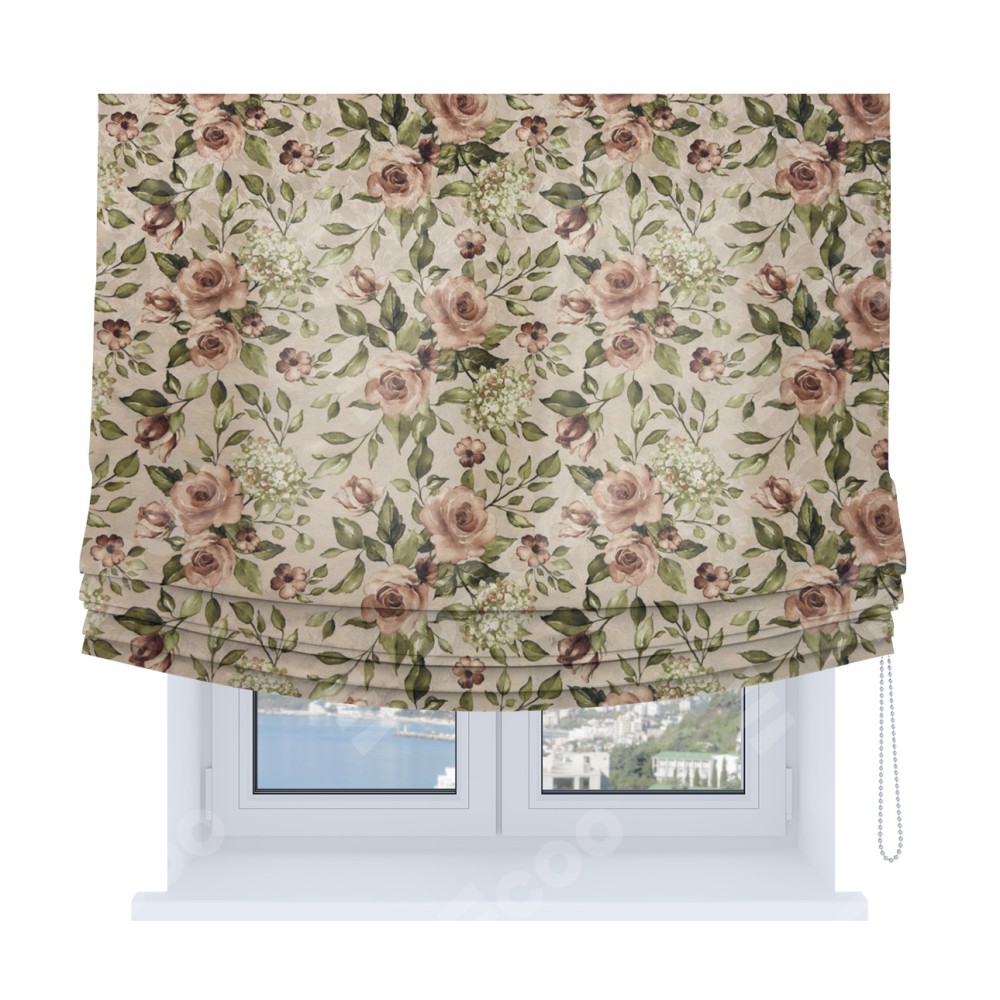 Римская штора Soft с мягкими складками, ткань «Розы бежевые»