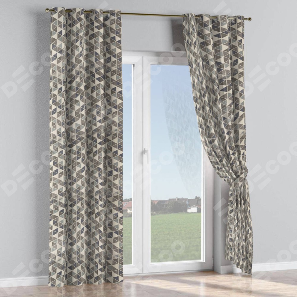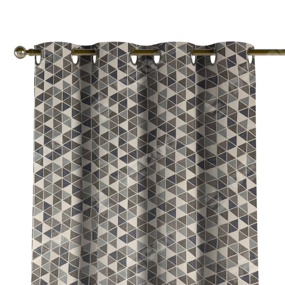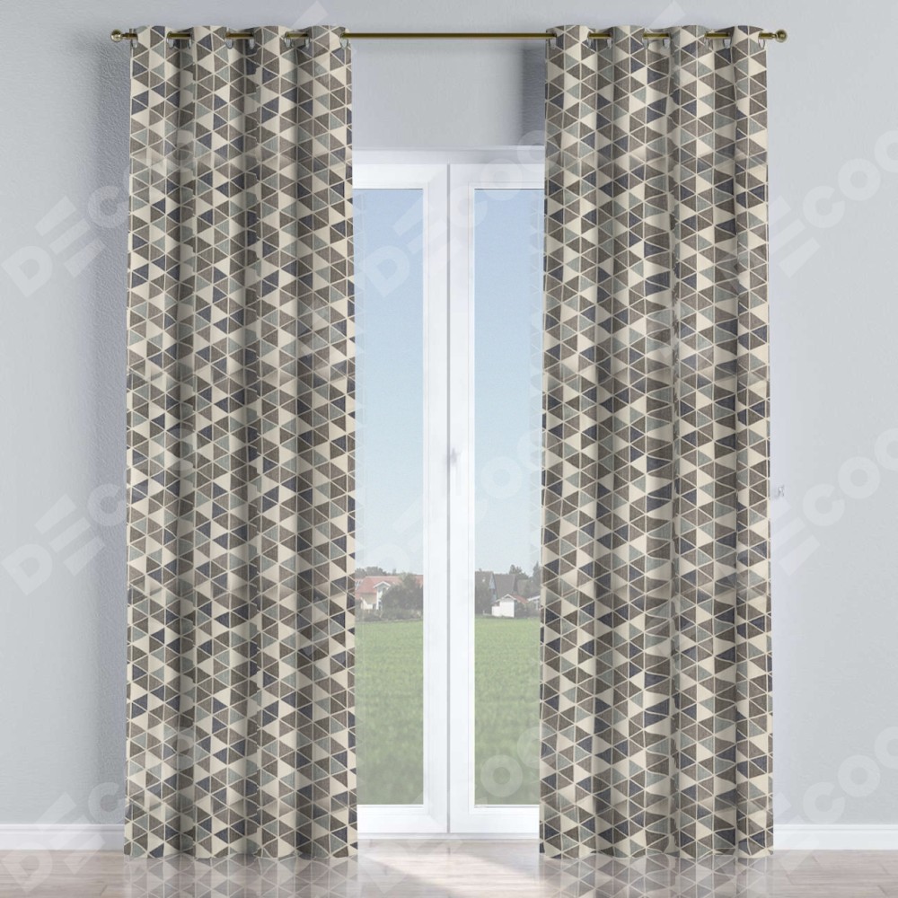 Комплект штор на люверсах ткань димаут «Треугольники синие» отлично подойдёт для интерьера холл, для комнаты и офис.