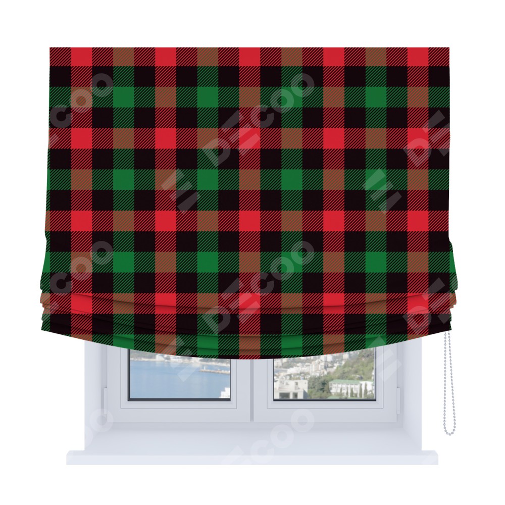 Римская штора Soft производителя «Cortin», используется для проёма, пошита из ткани блэкаут с нанесением сублимационной печати «Красочная клетка». Имеет универсальный механизм и подходит для монтажа: на потолок, на стену и в нишу. В отличие от стандартных римских штор, римская штора Soft не имеет горизонтальных вставок и нижнего отвеса. Это позволяет ткани произвольно драпироваться в свободные мягкие складки.