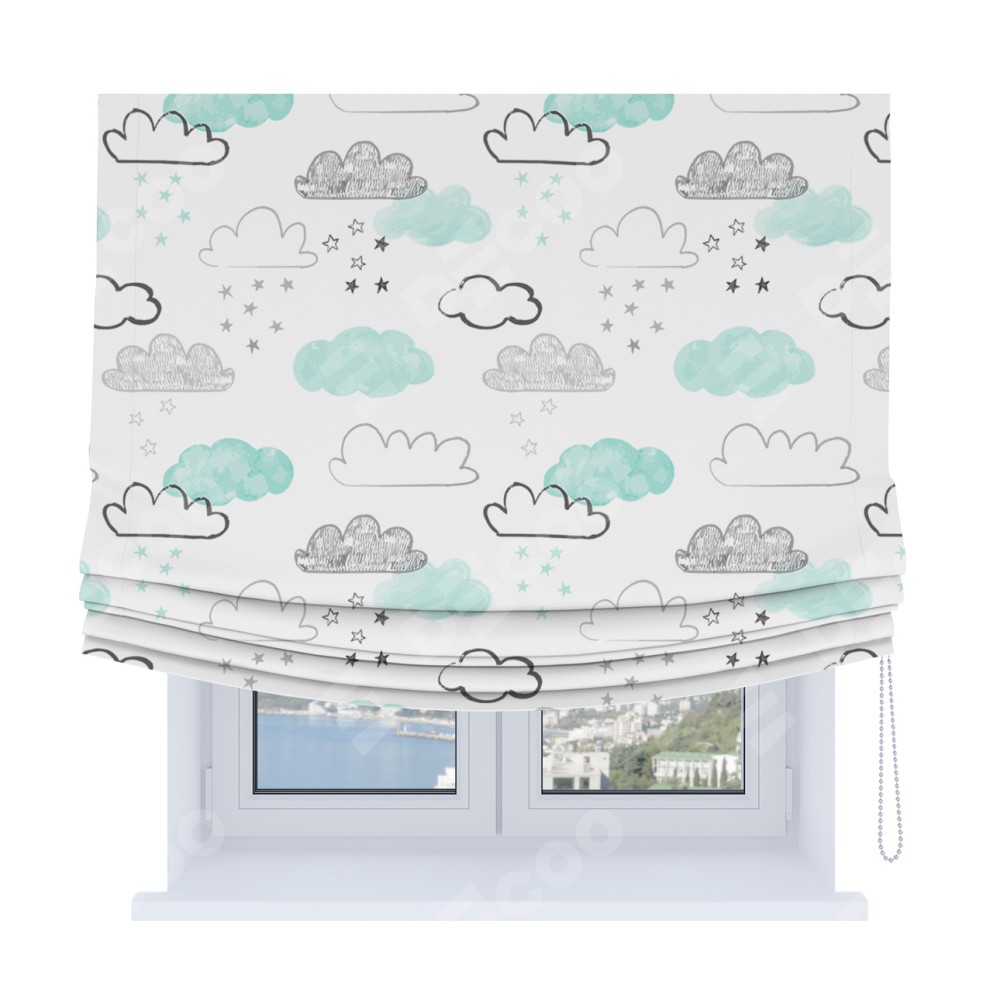 Римская штора Soft с мягкими складками, «Облака и звёзды»