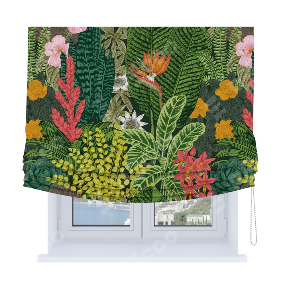 Римская штора Soft производителя «Cortin», используется для проёма, пошита из ткани блэкаут с нанесением сублимационной печати «Яркое цветение». Имеет универсальный механизм и подходит для монтажа: на потолок, на стену и в нишу. В отличие от стандартных римских штор, римская штора Soft не имеет горизонтальных вставок и нижнего отвеса. Это позволяет ткани произвольно драпироваться в свободные мягкие складки.