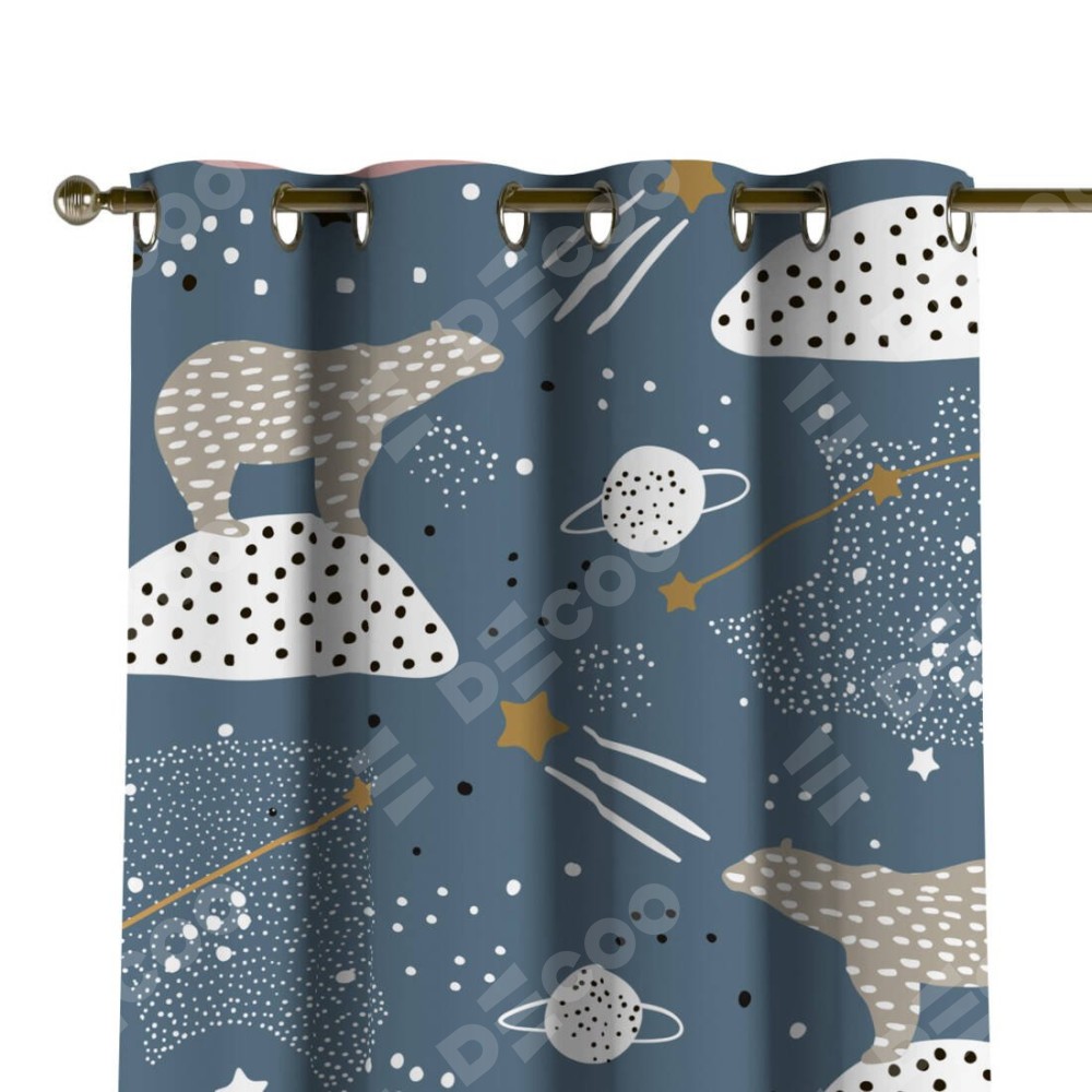 Комплект прямых штор, от производителя «Cortin», пошиты из ткани блэкаут с нанесением сублимационной печати «Белые медведи». Данная модель пошита на люверсах, комплектуется на выбор круглым карнизом и подходит для монтажа на стену или потолок. Прямые шторы на люверсах шьются по стандарту с коэффициентом 1/2 (на 100 см. ширины проёма 200 см. ширины ткани), отличительным преимуществом данной модели является простой способ монтажа. Достаточно повесить ее на трубу и штора готова!