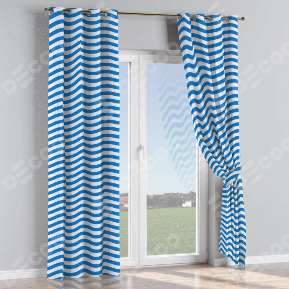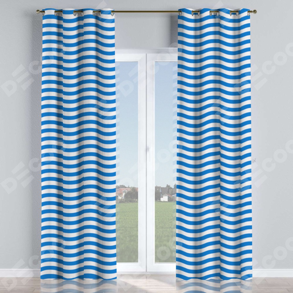 Комплект прямых штор, от производителя «Cortin», пошиты из ткани блэкаут с нанесением сублимационной печати «Волнистые линии». Данная модель пошита на люверсах, комплектуется на выбор круглым карнизом и подходит для монтажа на стену или потолок. Прямые шторы на люверсах шьются по стандарту с коэффициентом 1/2 (на 100 см. ширины проёма 200 см. ширины ткани), отличительным преимуществом данной модели является простой способ монтажа. Достаточно повесить ее на трубу и штора готова!