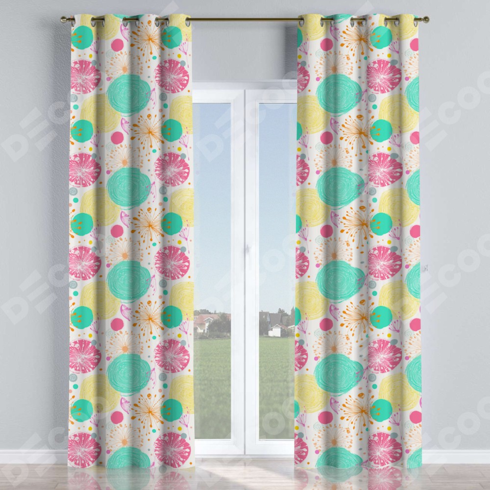 Комплект прямых штор, от производителя «Cortin», пошиты из ткани блэкаут с нанесением сублимационной печати «Забавные детали». Данная модель пошита на люверсах, комплектуется на выбор круглым карнизом и подходит для монтажа на стену или потолок. Прямые шторы на люверсах шьются по стандарту с коэффициентом 1/2 (на 100 см. ширины проёма 200 см. ширины ткани), отличительным преимуществом данной модели является простой способ монтажа. Достаточно повесить ее на трубу и штора готова!